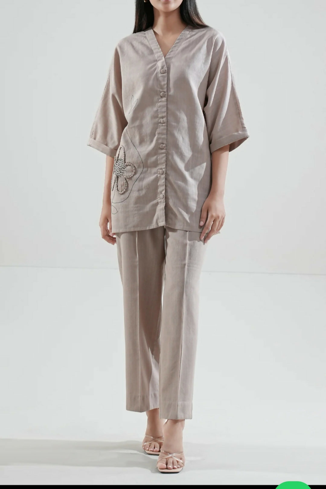 | MATERIAL & MEASUREMENT | Viscose Chest : 23.5 Sleeves : 17 Shoulders : 16 Shirt length : 29 Trouser length : 40 |