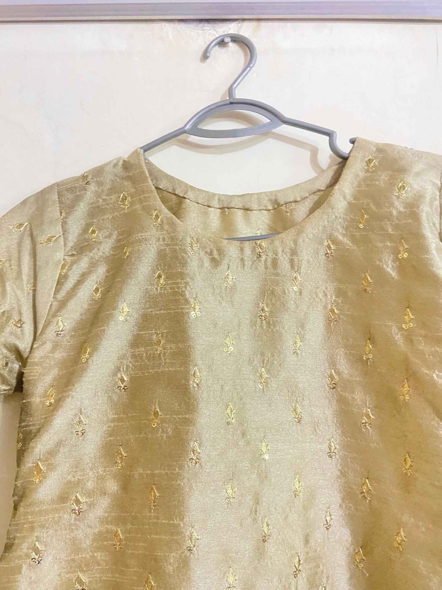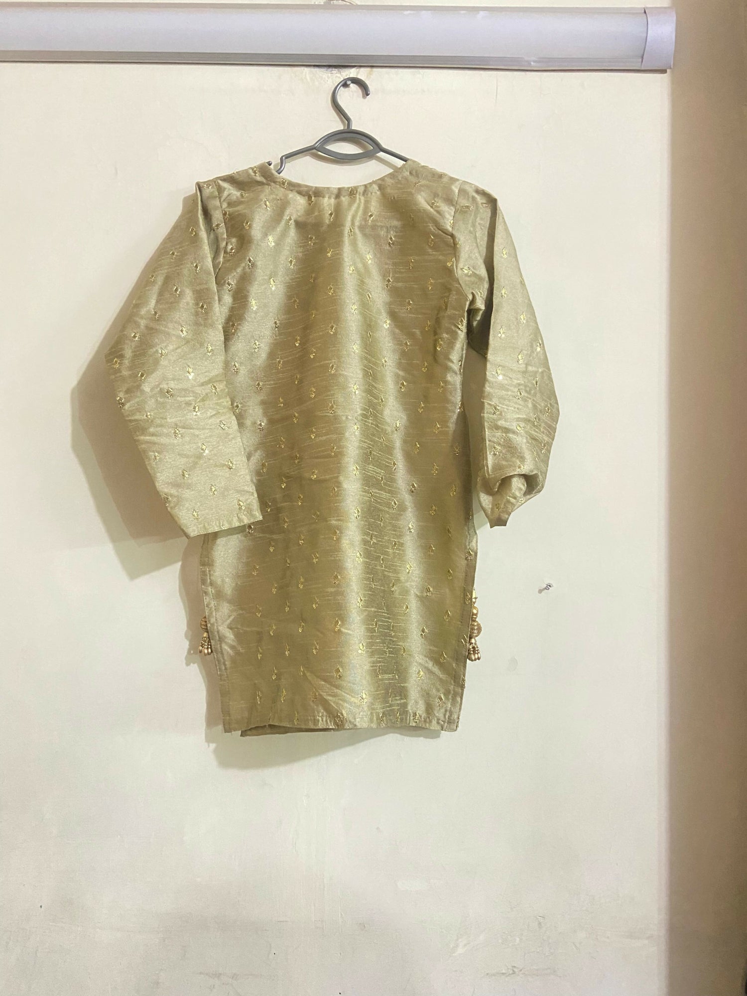 | MATERIAL & MEASUREMENT | Shirt Length 28 inches Sleeves 18 inches Chest 16-18 inches Trousers length 40 inches Trousers waist 20-22 inches Garara round 30 inches |