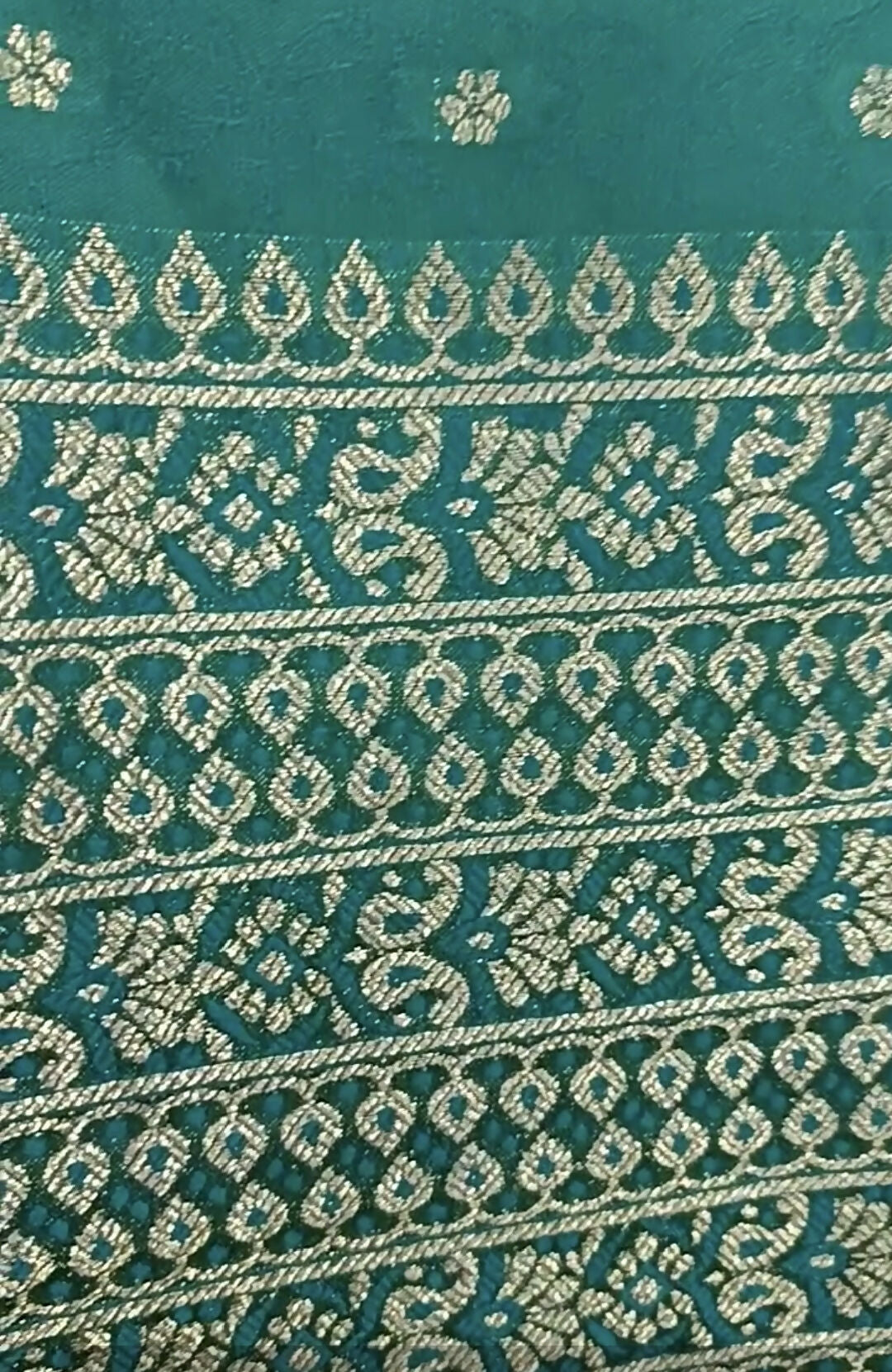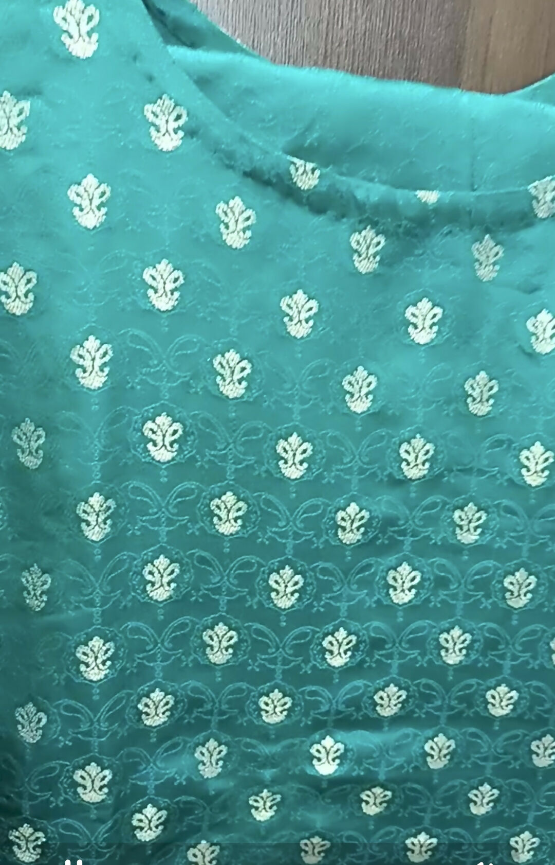 | MATERIAL & MEASUREMENT | Fancy Jacquard Measurements (inches) Shirt: Length 14, chest 17, shoulder 14 Trouser: Length 36, Hips 17, waist 16 Dupatta 2.5 meters |