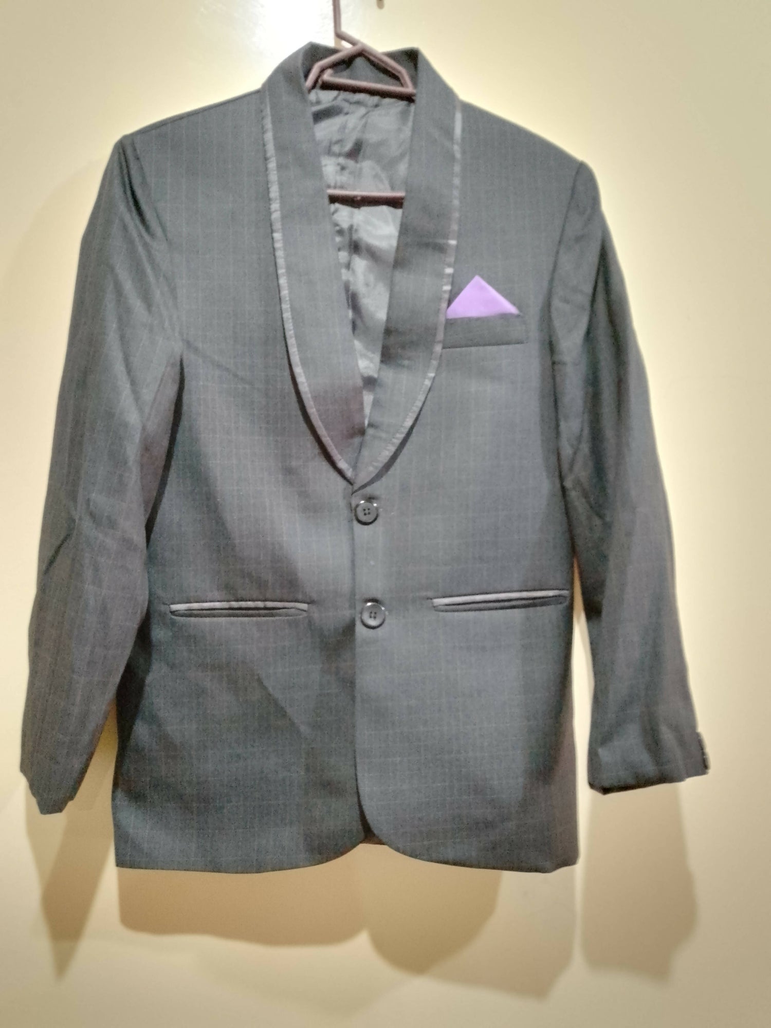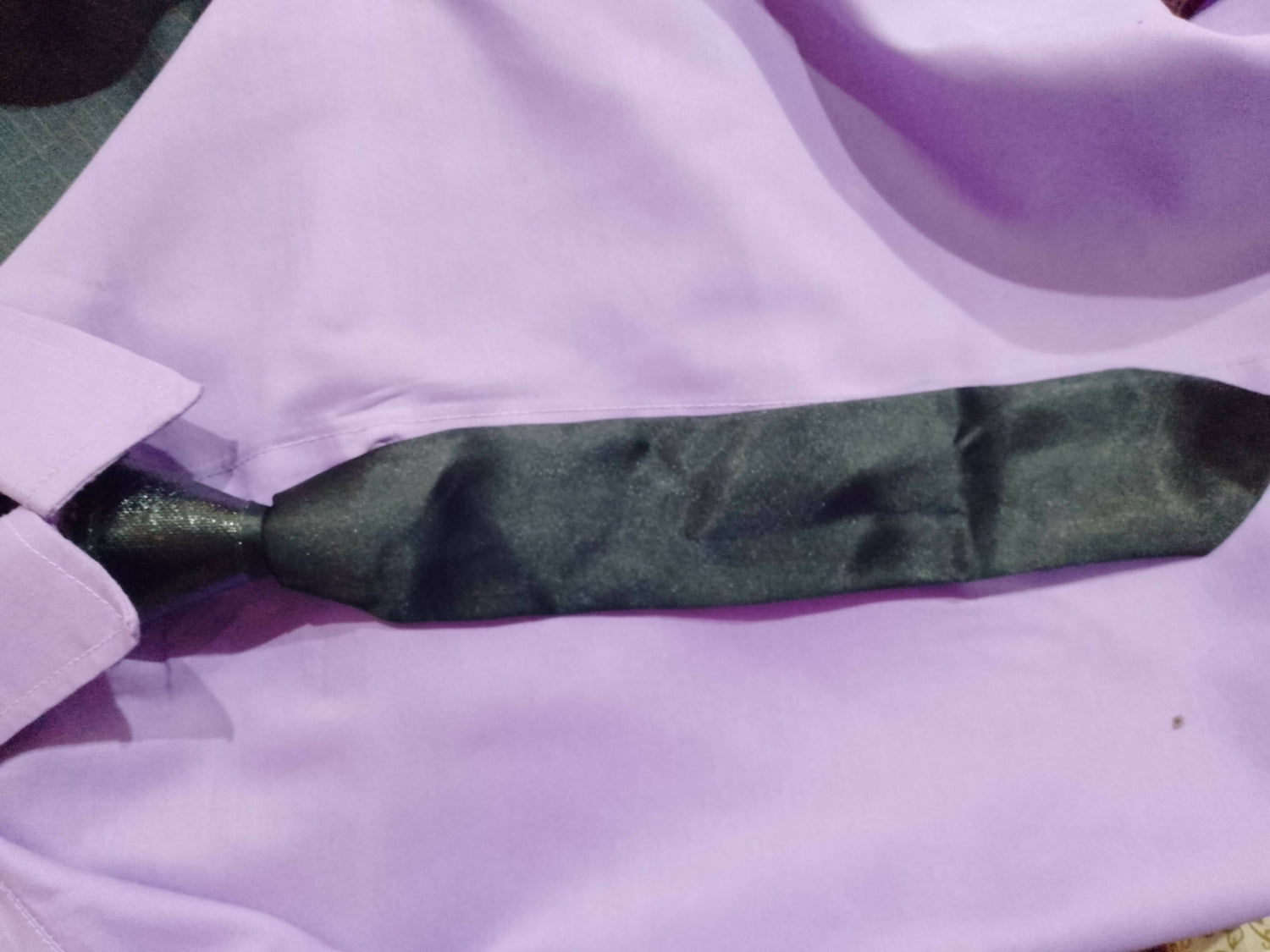 رنگ: ہلکی جامنی شرٹ اور گرے پینٹ کوٹ