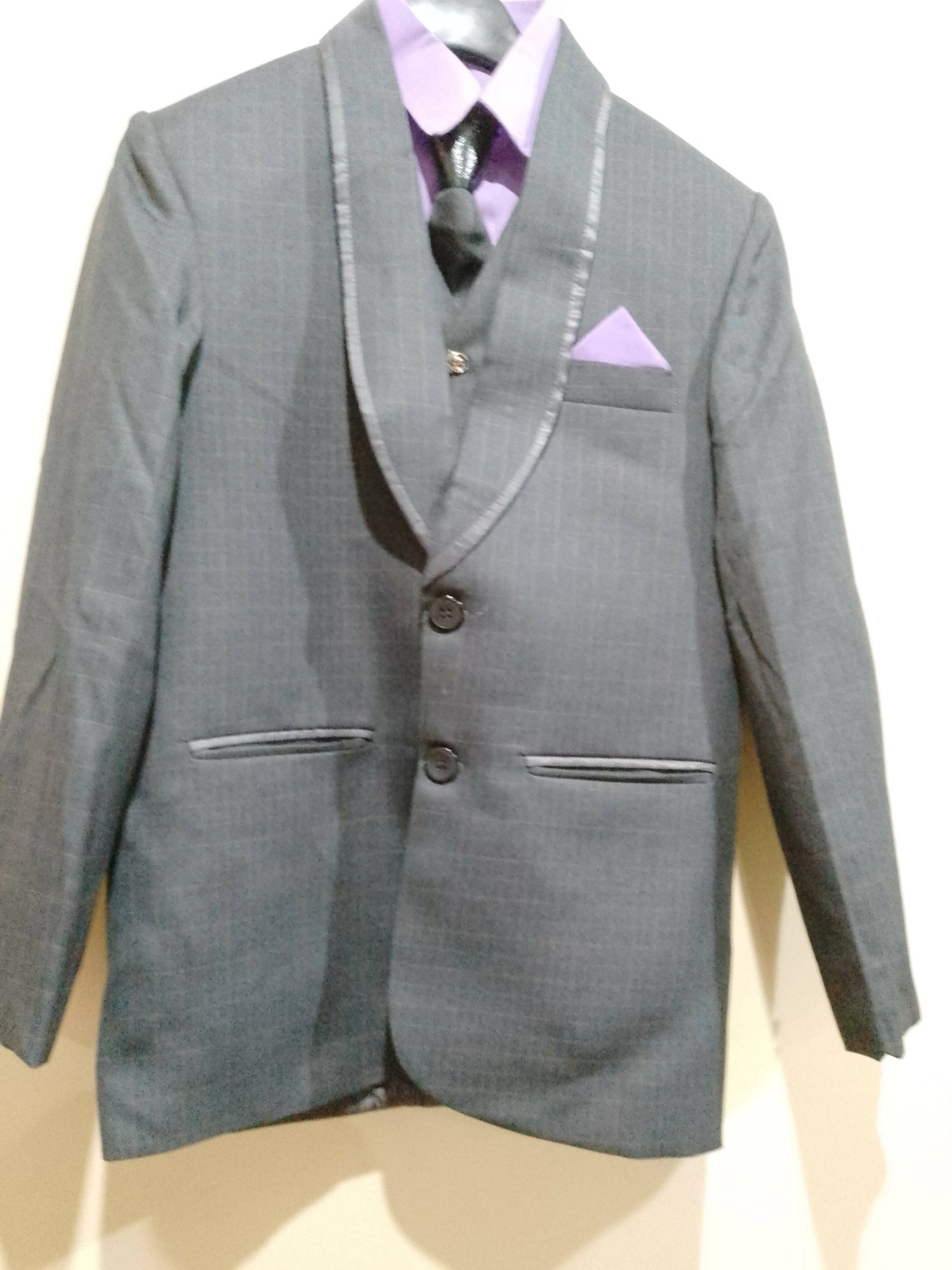 4 پیس لڑکوں کی پینٹ کوٹ شرٹ اور سلک ٹائی کے ساتھ واسکٹ (سائز: S ) | لڑکے نیچے اور پتلون | ٹاپس اور شرٹ | ایک بار پہنا۔