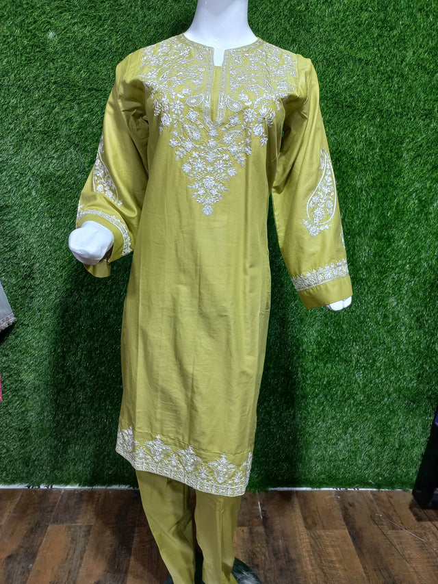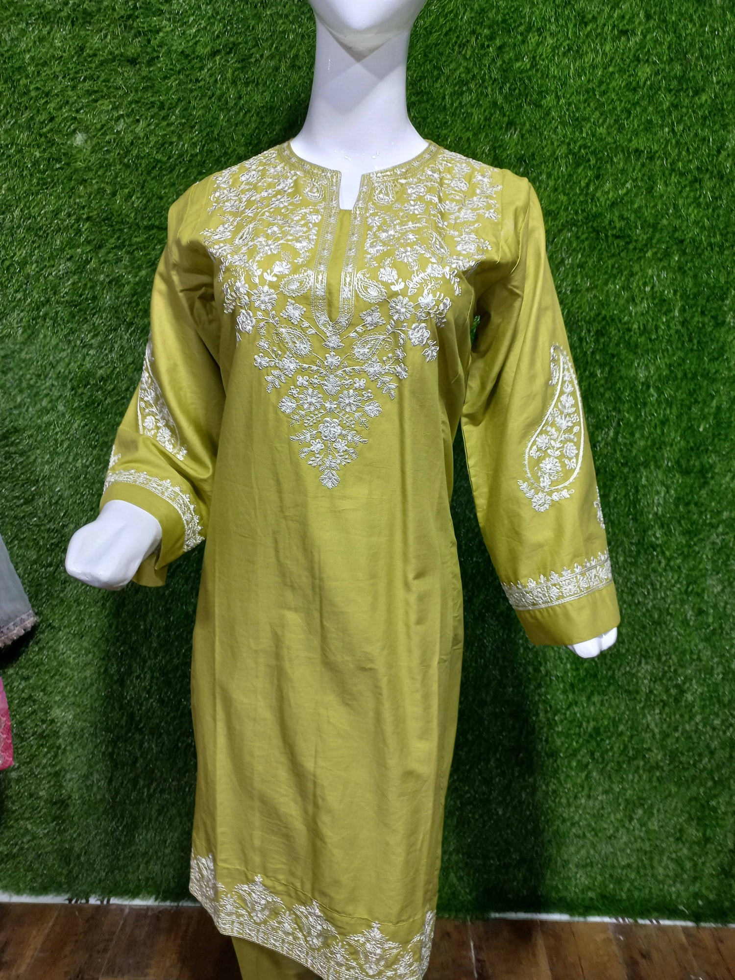 آغا نور | سبز کڑھائی والا 2 پیس سوٹ | بڑے سائز | بالکل نیا