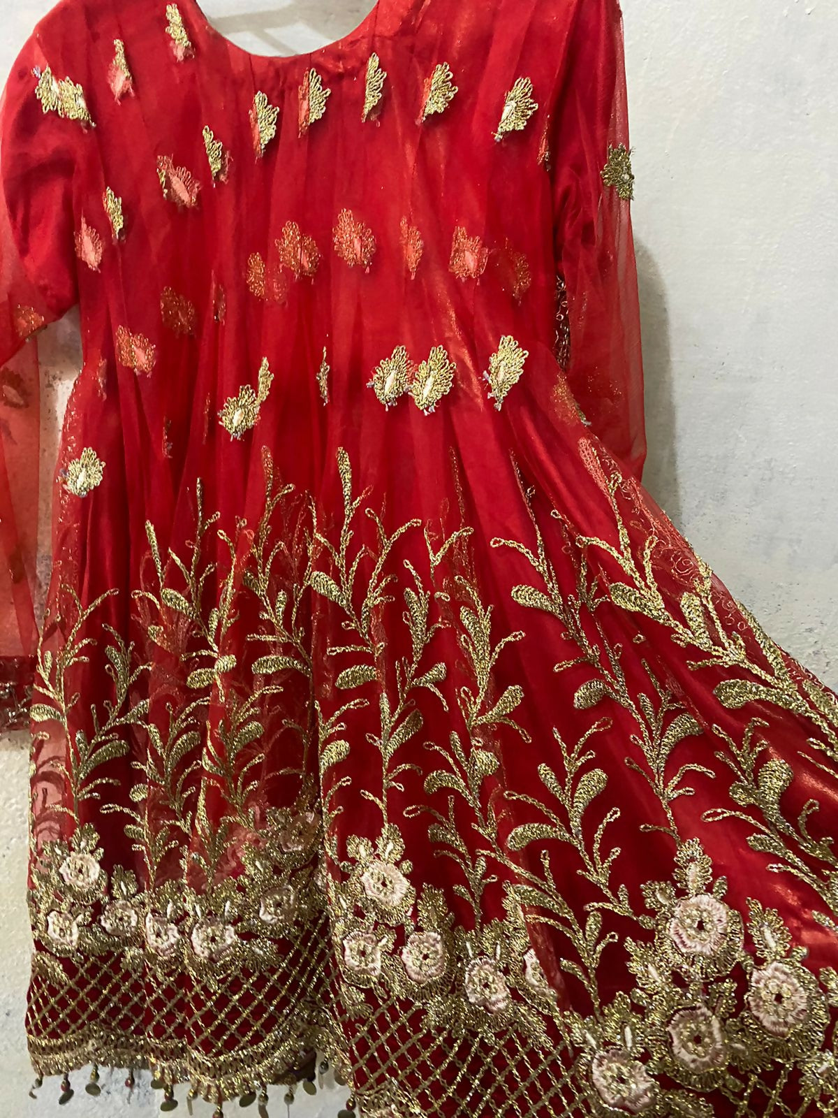 MATERIAL & MEASUREMENT Material : Net Embroidery Short Frock and Trouser Measurement ; Frock width 40 inch Trouser width 42 inch
