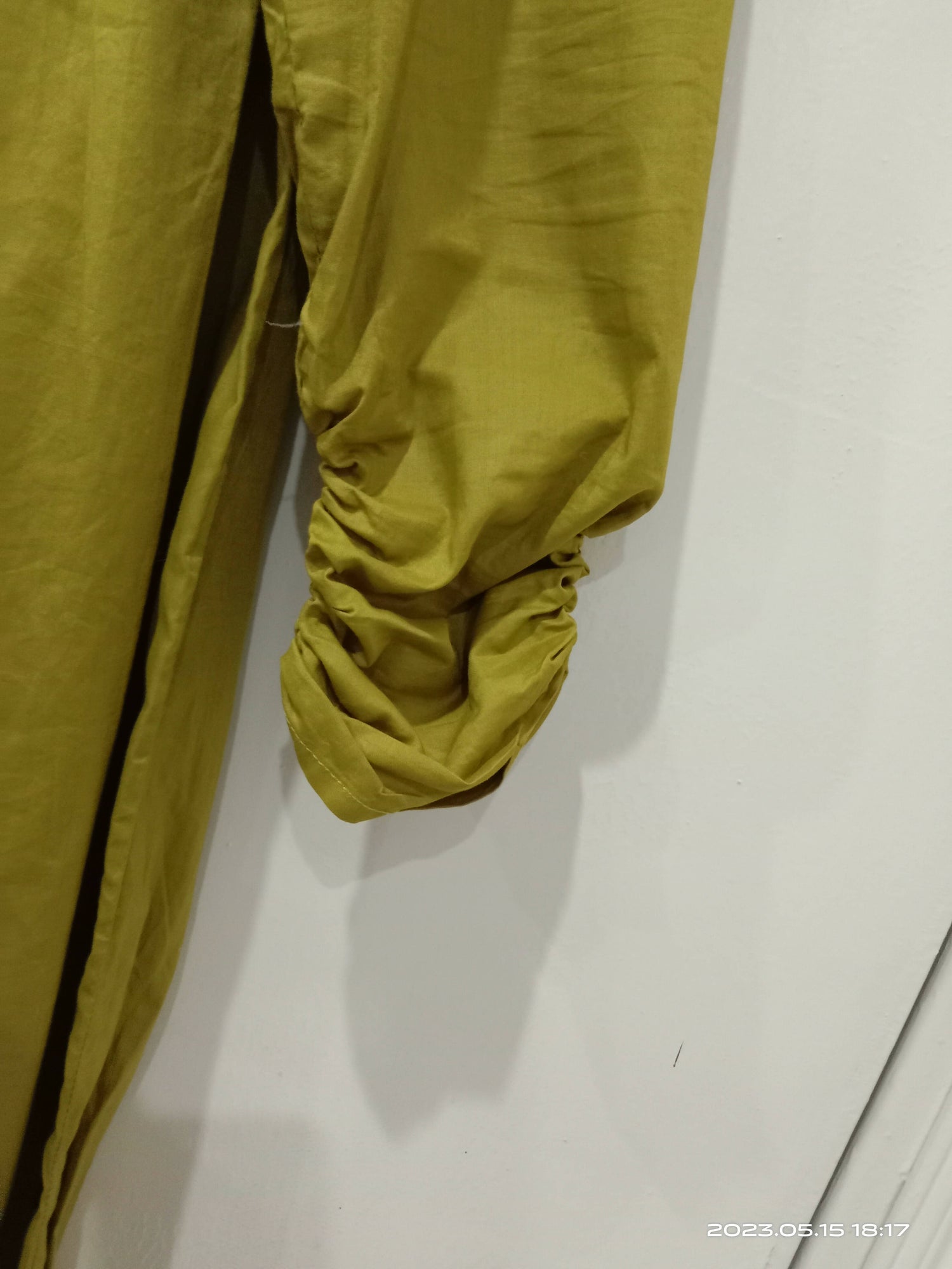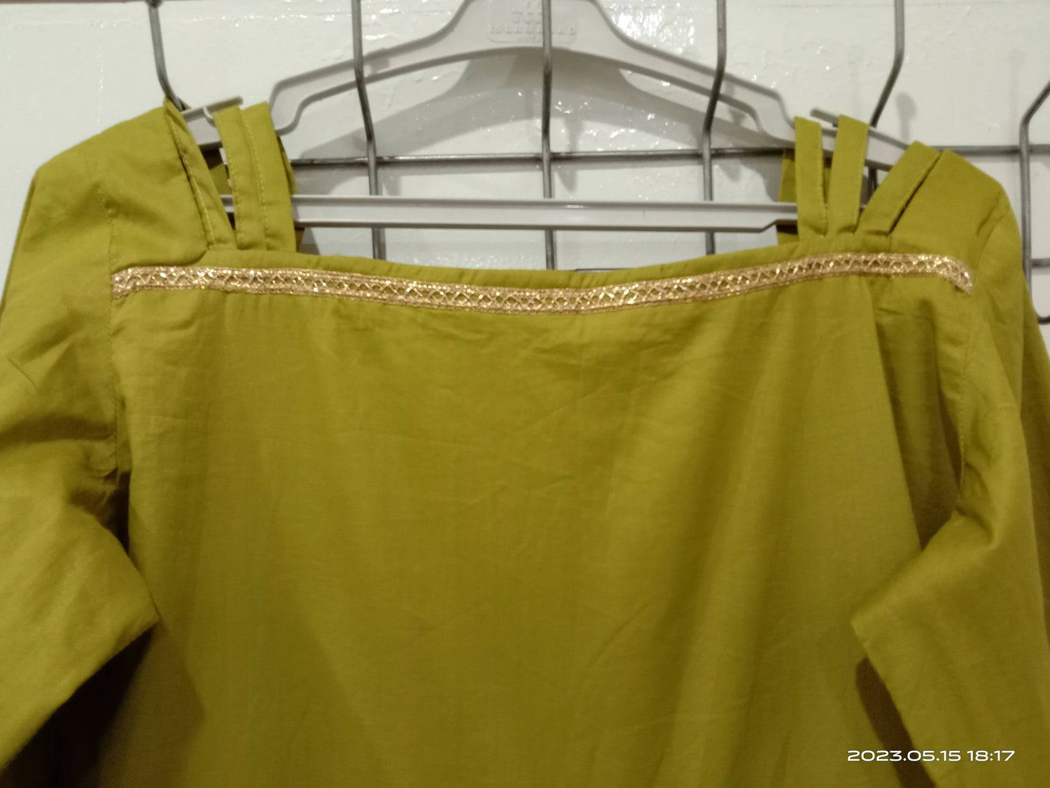 | MATERIAL & MEASUREMENT | Pure lawn fabric Frock: length 52. Sleeves 22.5. Chest 20. Flair all around 140 inches Trouser: length 38 |