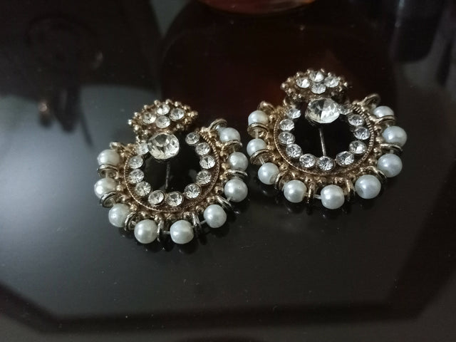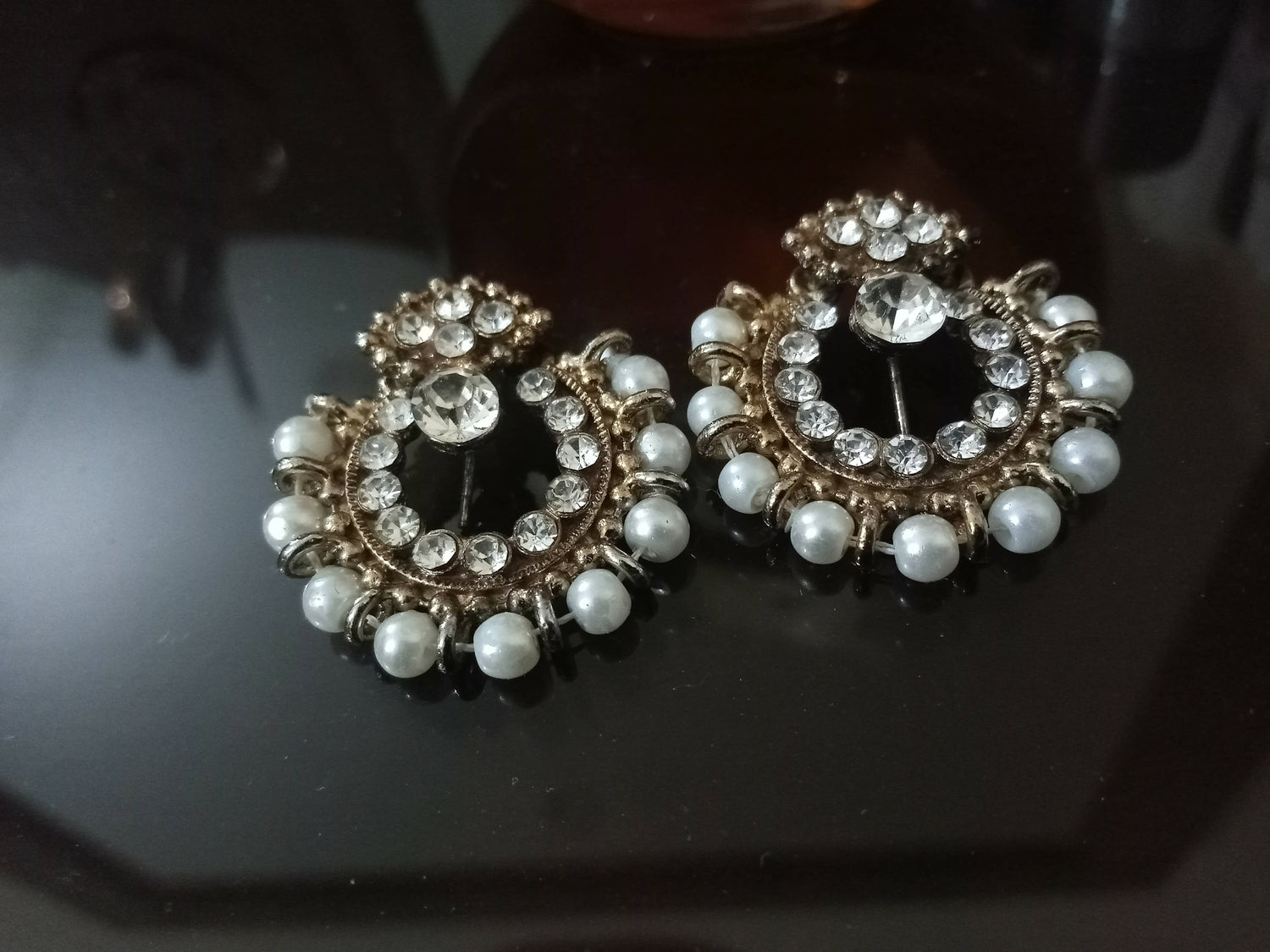 سونے اور موتیوں کے ساتھ مصنوعی زیورات | کان کی بالیاں | زیورات | ایک بار پہنا۔