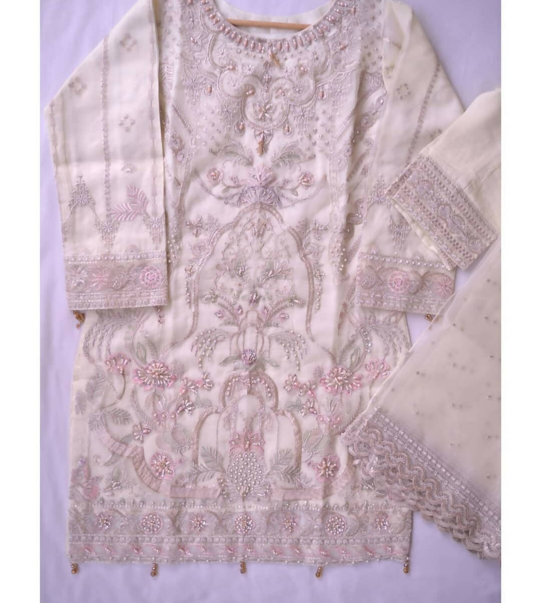 | MATERIAL & MEASUREMENT | material: organza condition: 10/10 trouzer length: 38 shirt length: 38 sleeves length: 21 chest: 19 waist:17.5 hip: 20 |