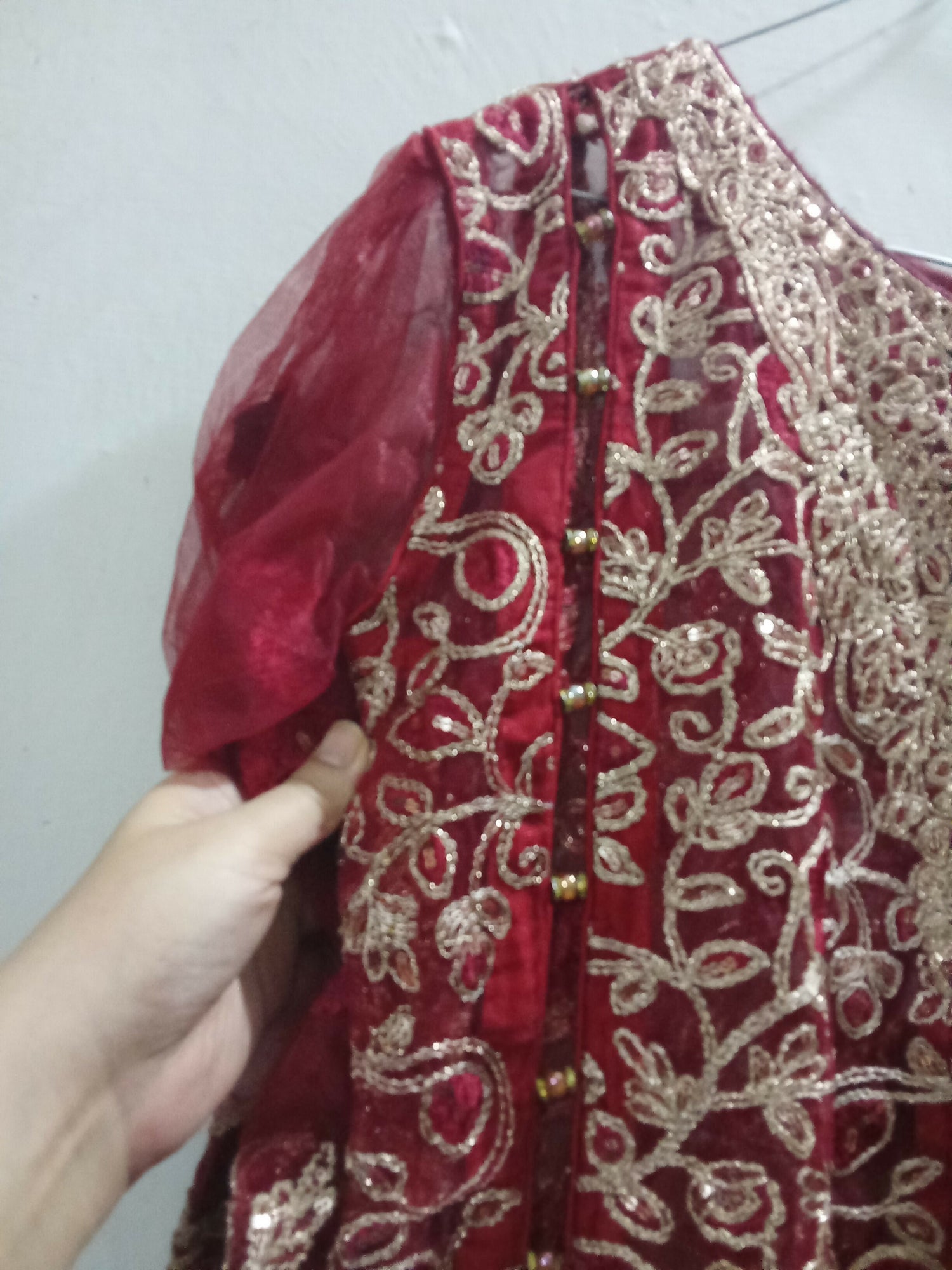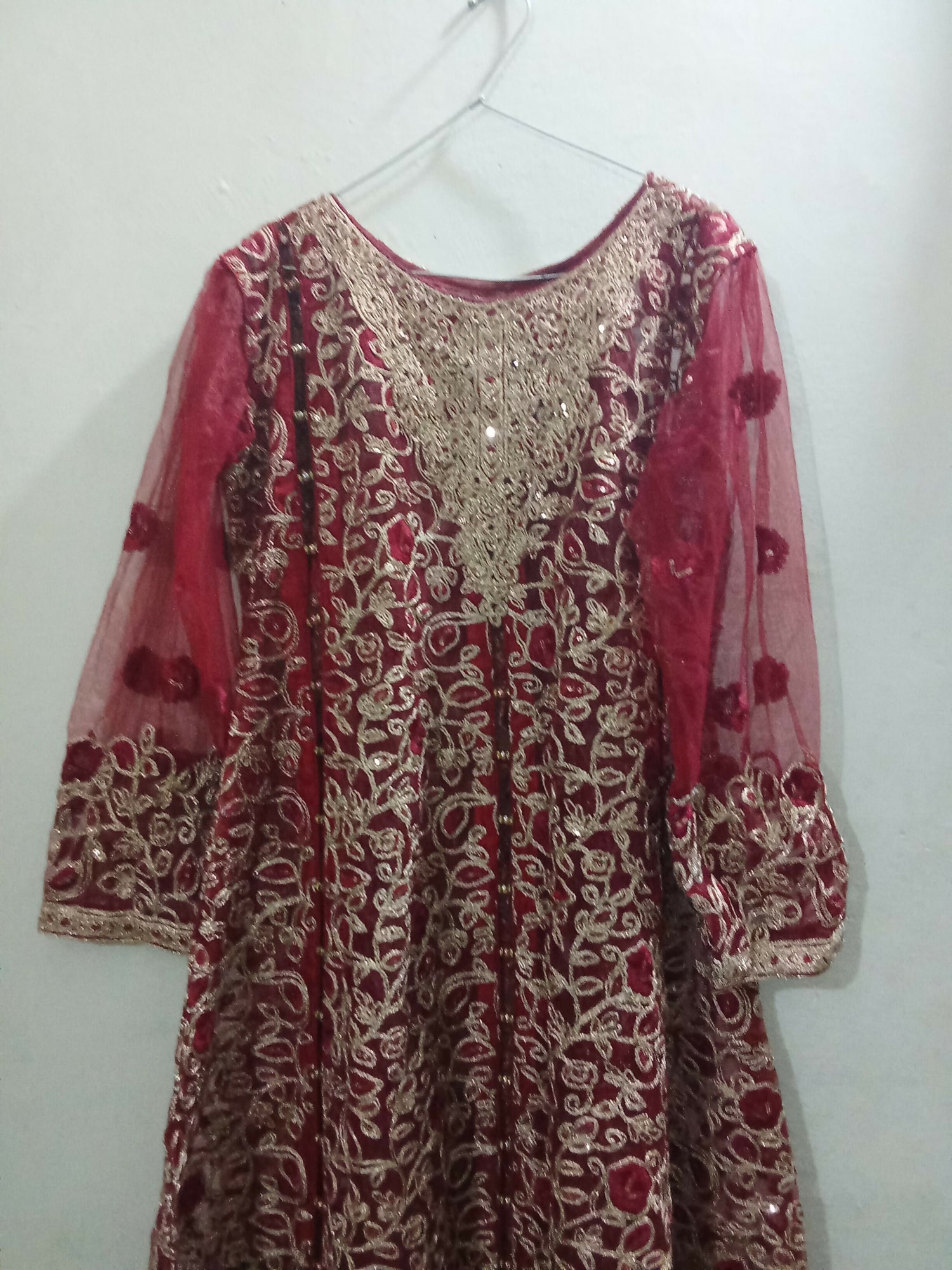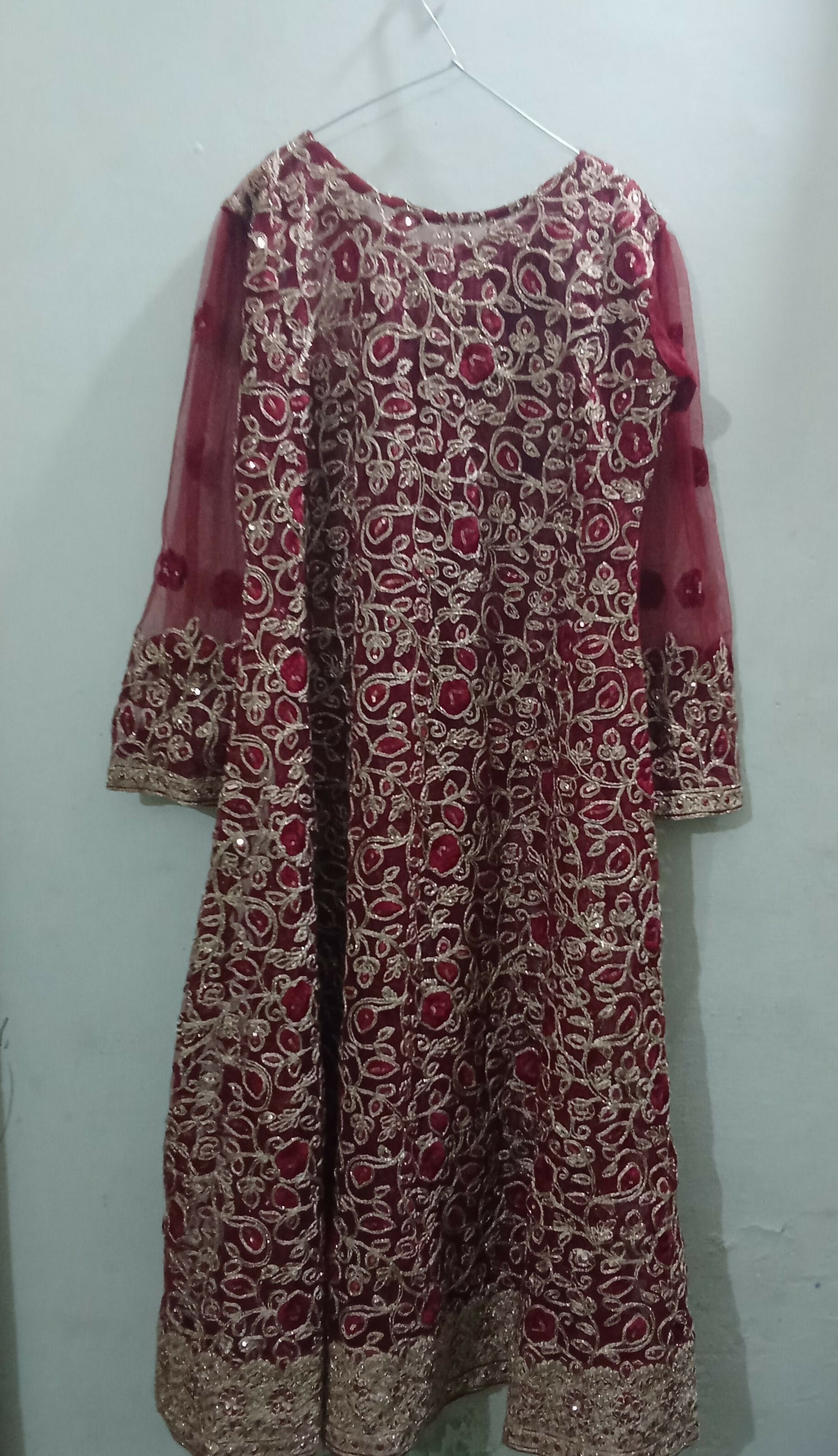 | MATERIAL & MEASUREMENT | Material : Fancy Embriodered Three piece Bridal Maxi. Embriodered net duppata. Silk trouser and inner Measurement: 2.5 yards net duppata Shoulder:17 Chest:20 Back:19 Length:47 Trouser length:39 |