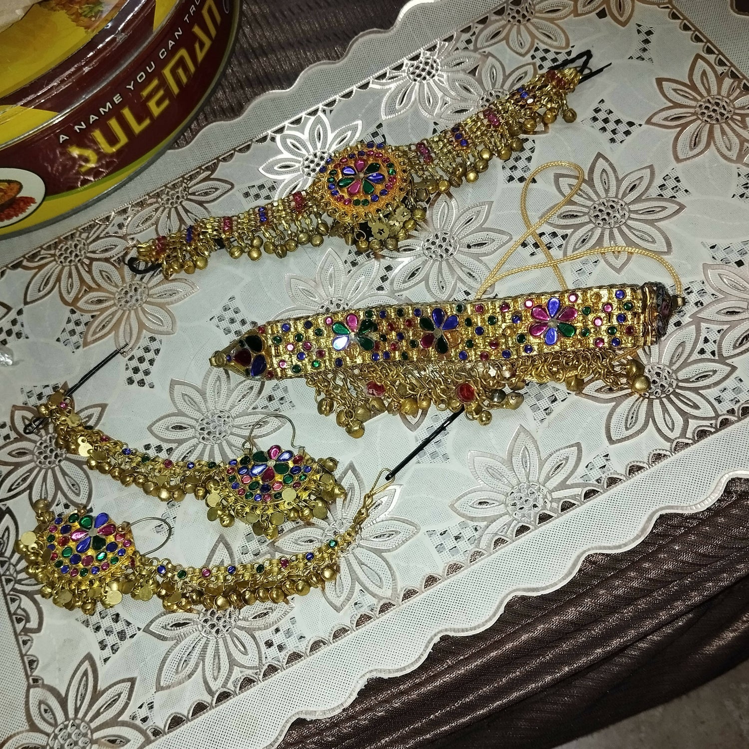 خوبصورت گولڈن افغانی سیٹ | خواتین کے زیورات | ایک بار پہنا۔