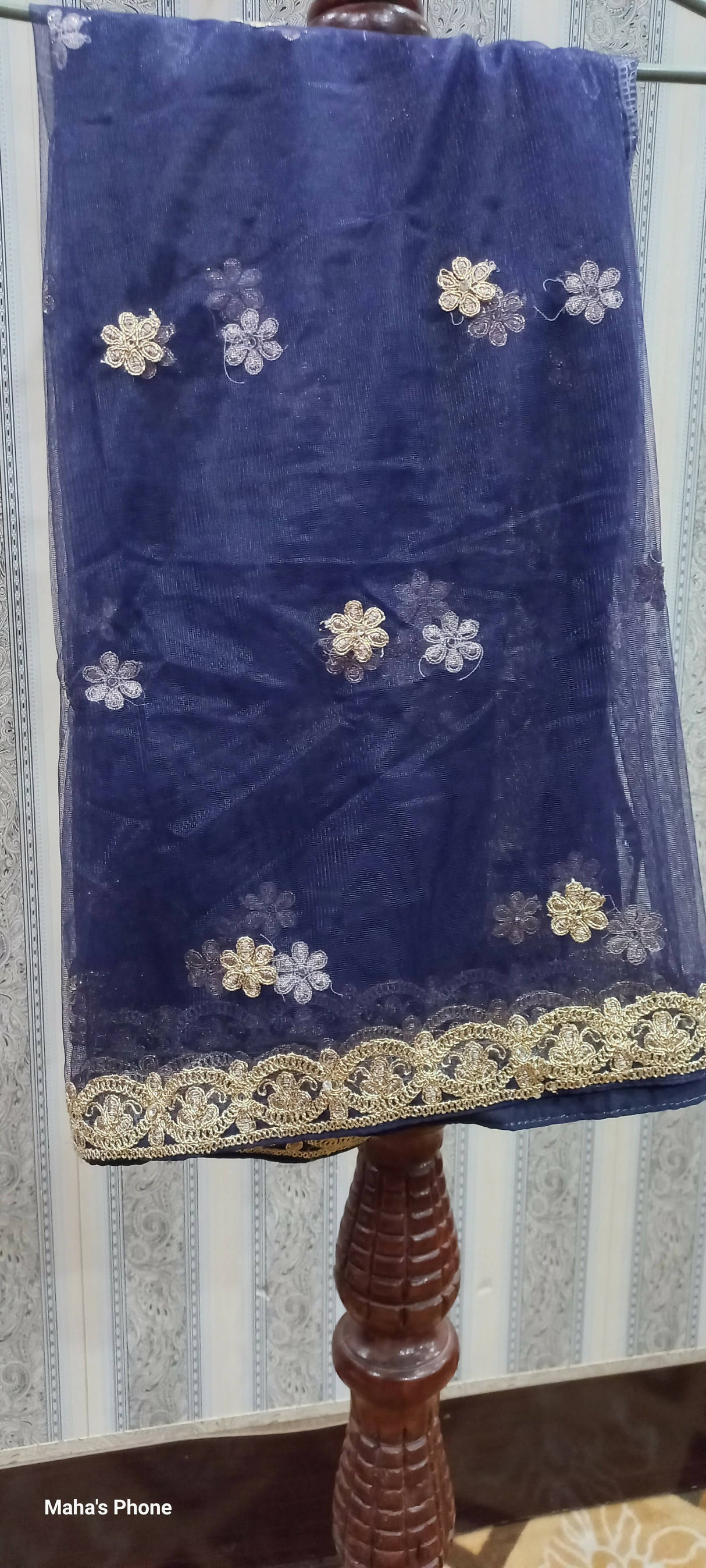 Net Duppata border embroidery work