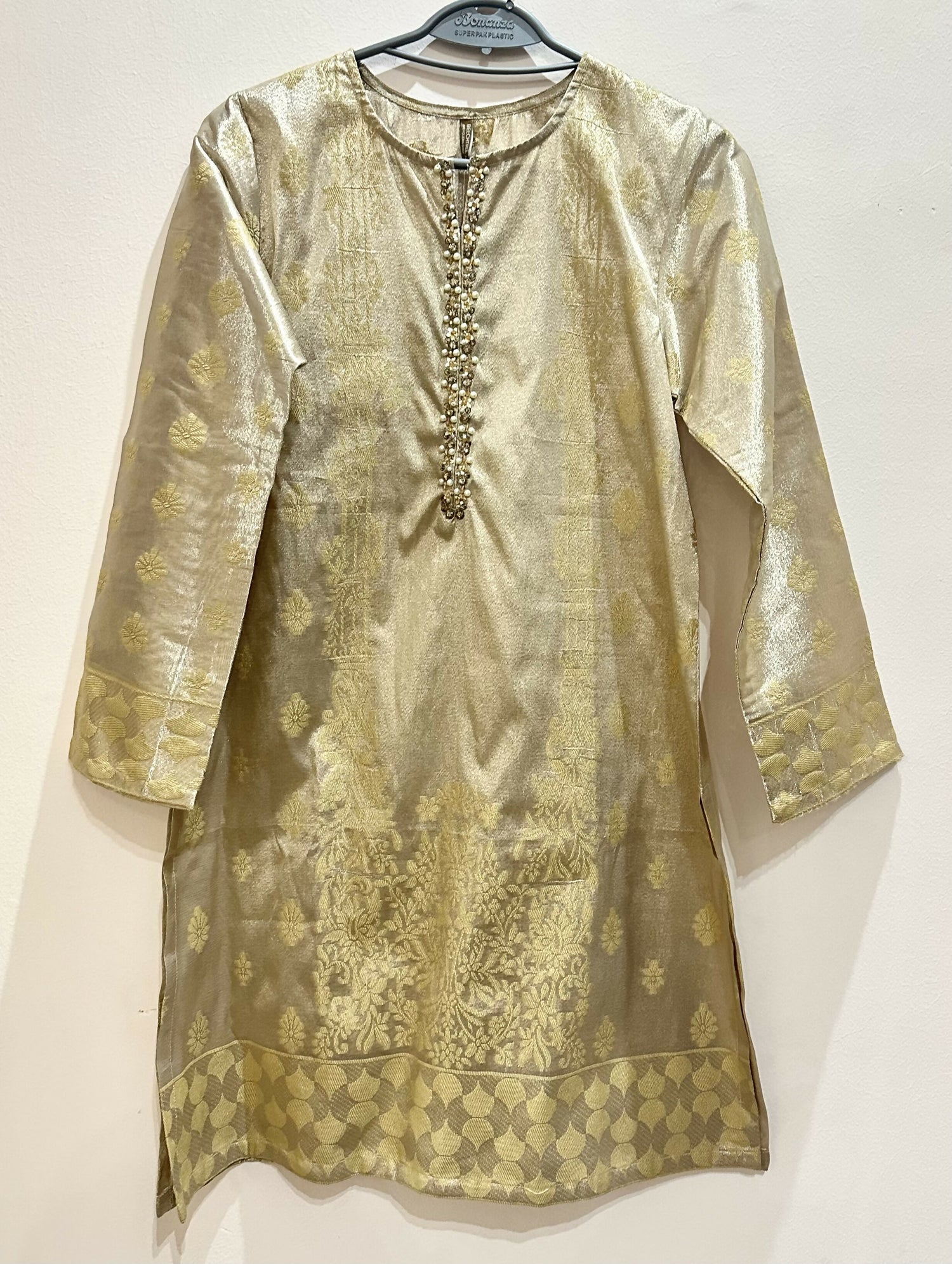 Beechtree | Masoori Golden Embellished Kurta | Women Branded Kurta | X-Small | New is backordered and will ship as soon as it is back in stock.
