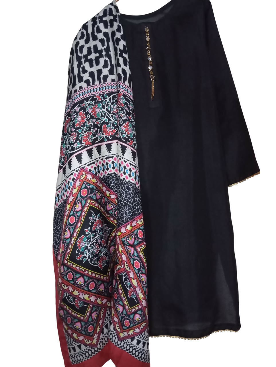 Black 3 PC Katan Silk Suit | Women Locally Made Formals | Medium | Worn Once is backordered and will ship as soon as it is back in stock.