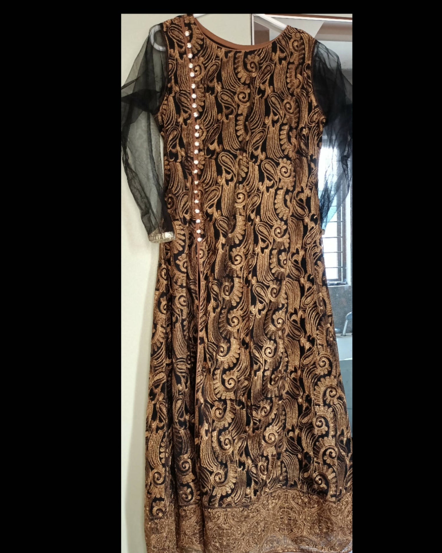 Black Gold Net Maxi | Women Frocks & Maxis | Medium | New