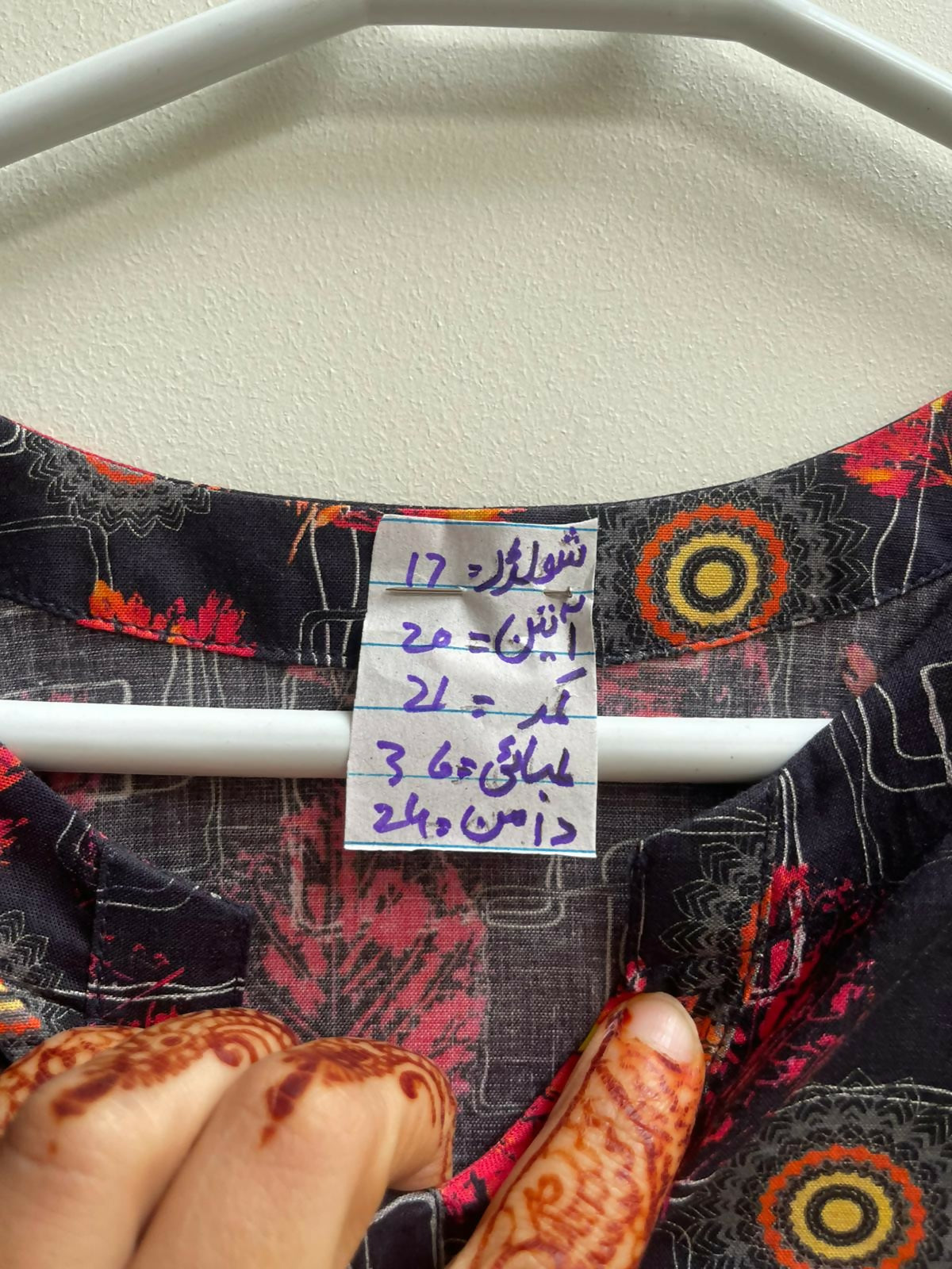 | MATERIAL & MEASUREMENT | Measurements: Shoulder: 17 Sleeves: 20 Waist: 21 Length of Shirt : 36 Daman: 24 |
