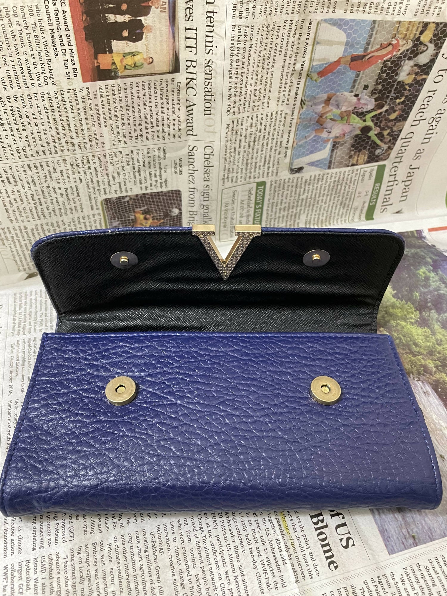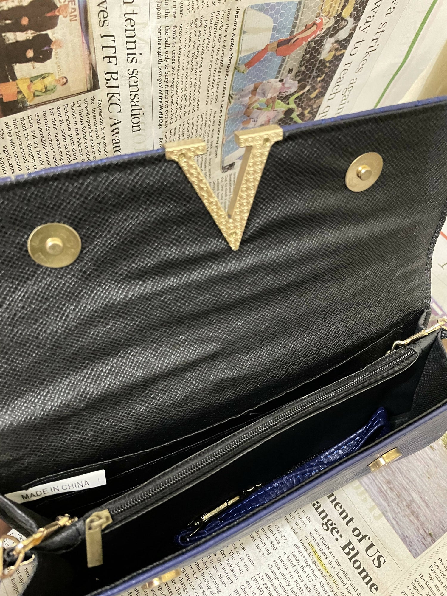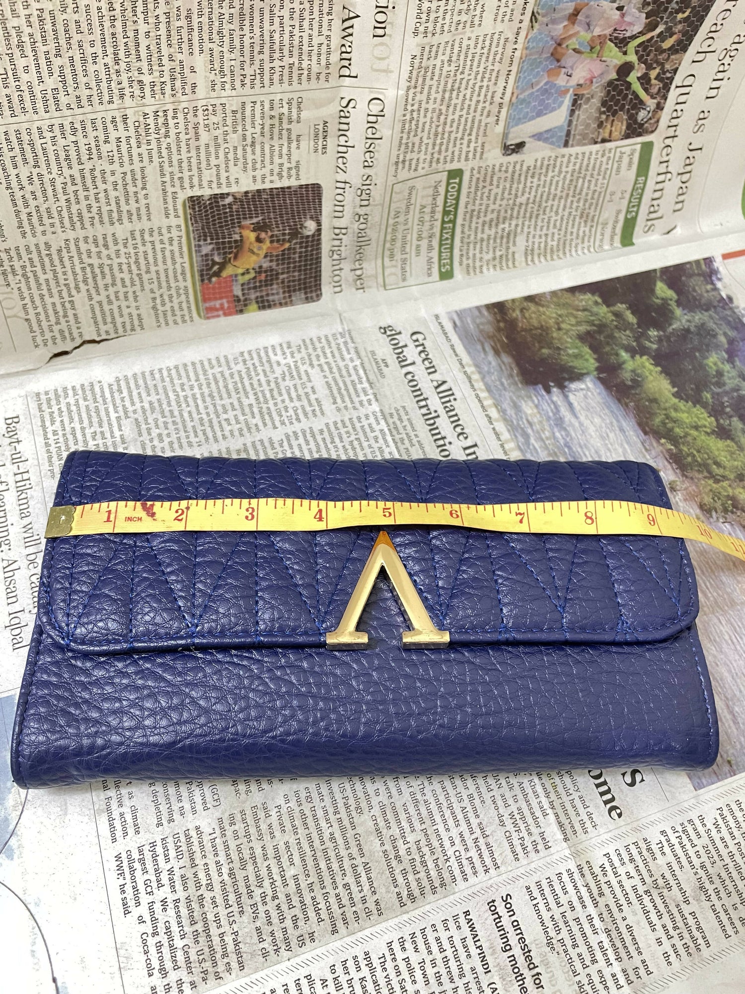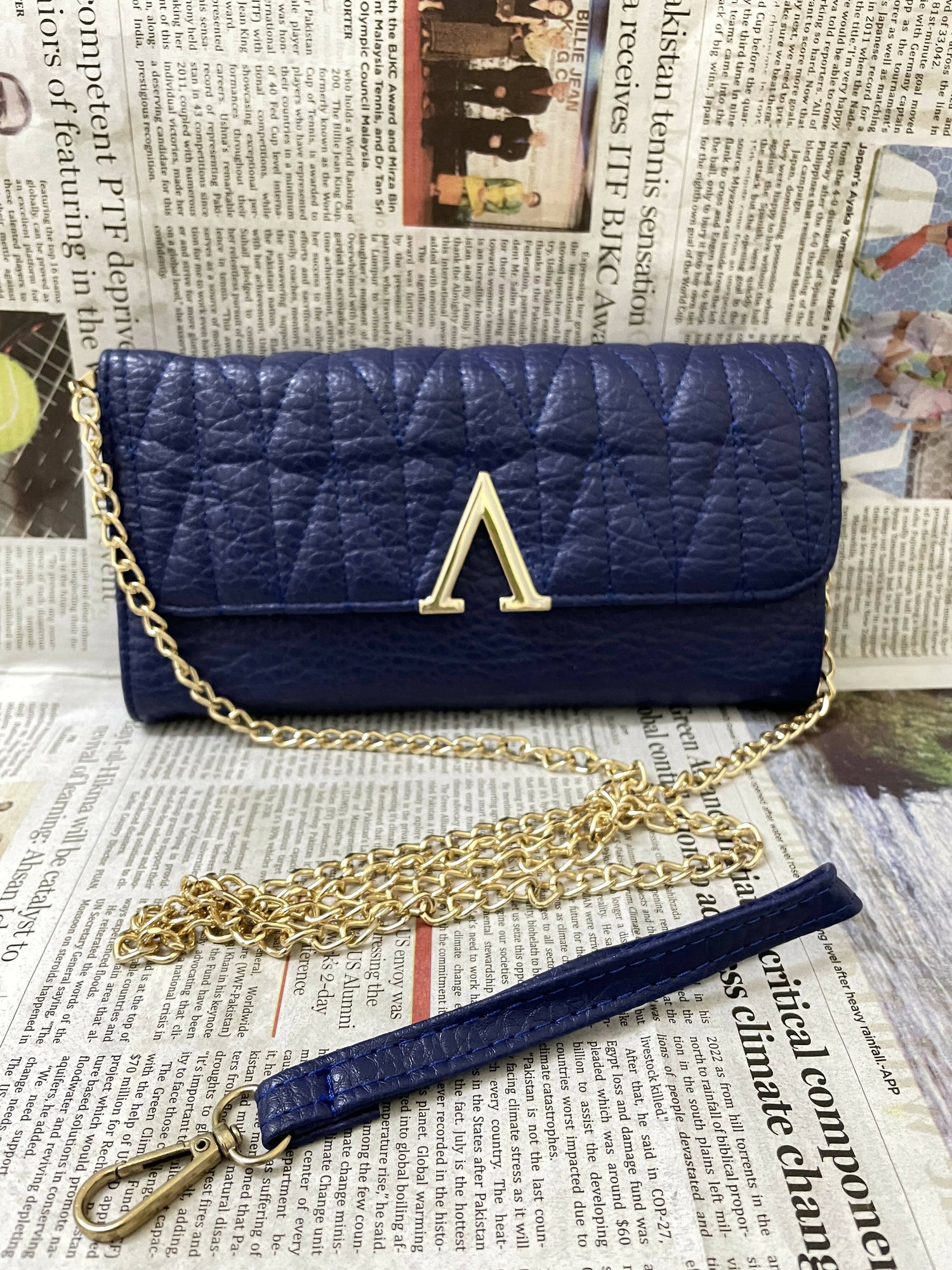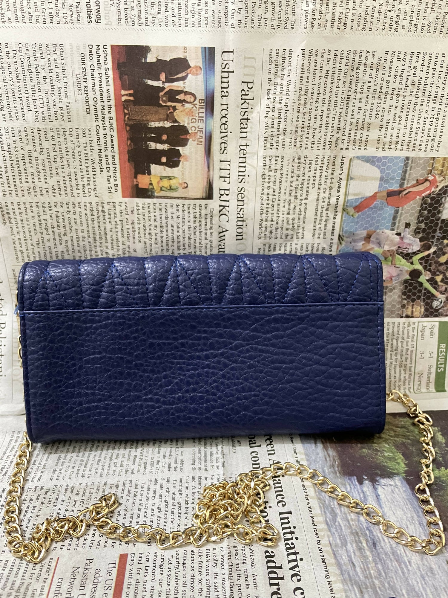 | MATERIAL & MEASUREMENT | Material- Soft Leather Colour - Blue Size - 9.5 inches (Length) Size - 5 inches (Width) Compartments - 2 Zipper pocket - 1 Cards holder section Comes with a long golden chain and small belt for holding Condition- New (unused) Bought from - Saudi Arabia Made in - China |