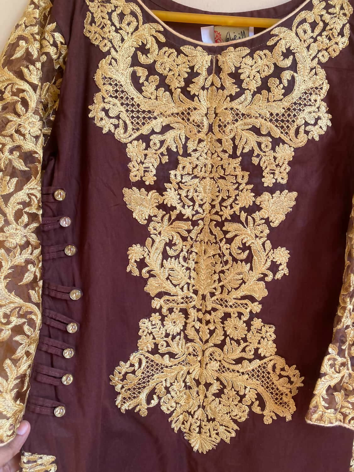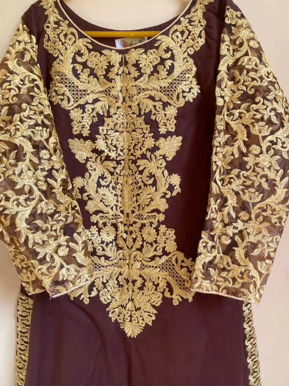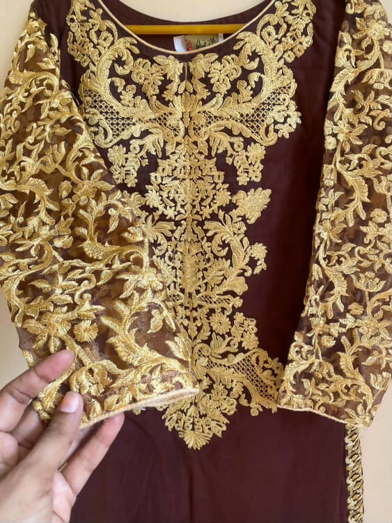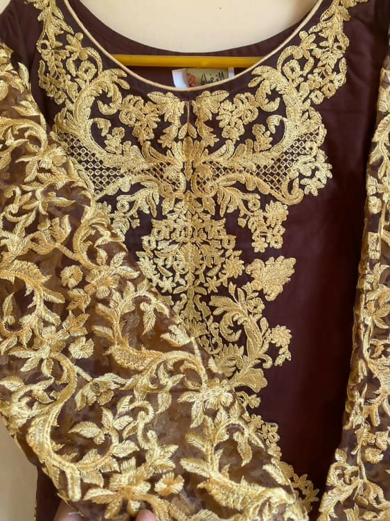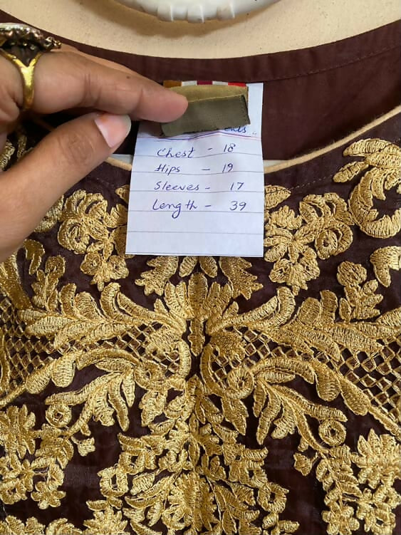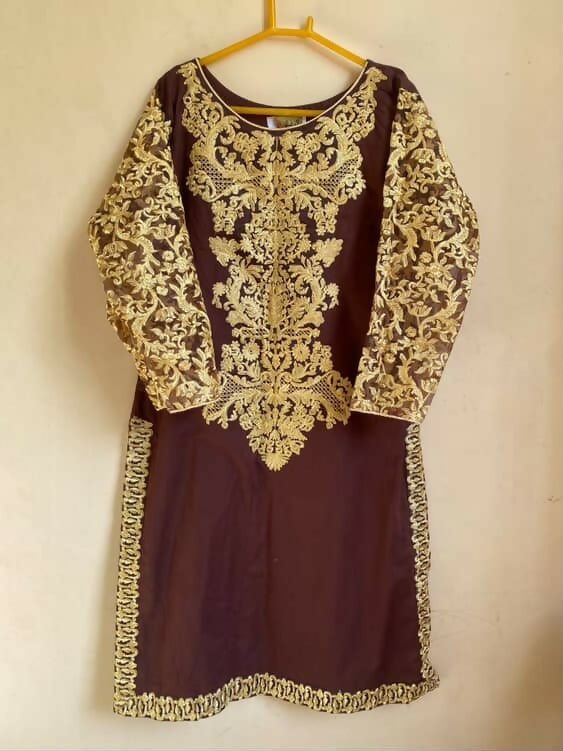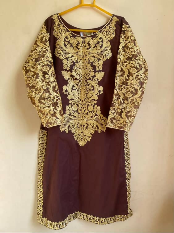 Brown Embroidered Kurta | Women Locally Made Kurta | Medium | Worn Once