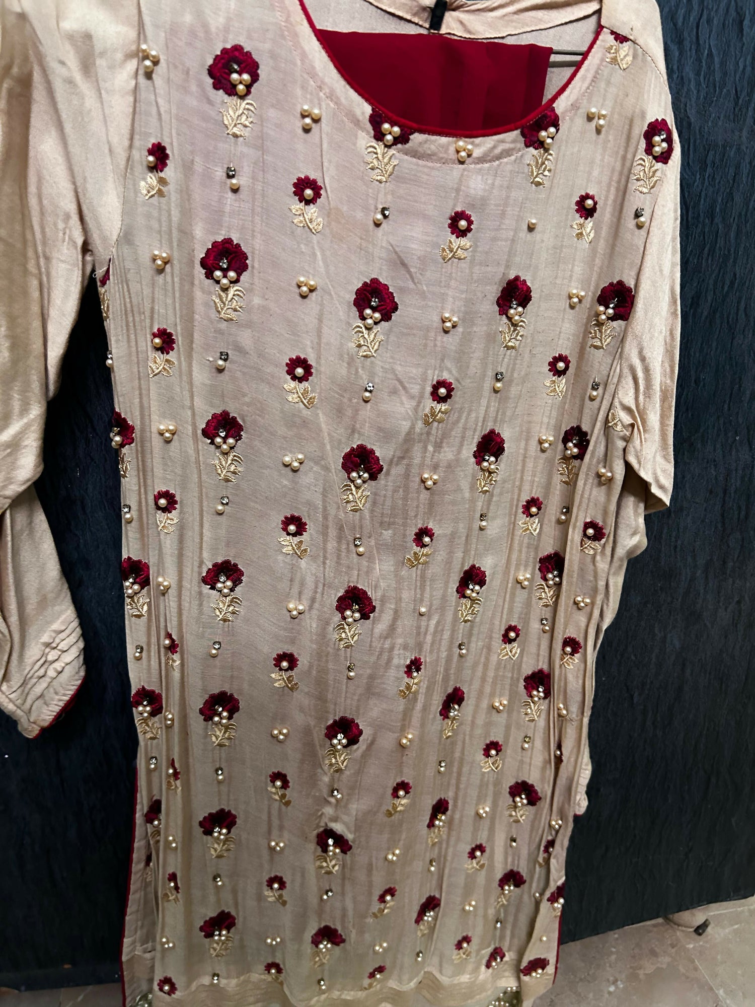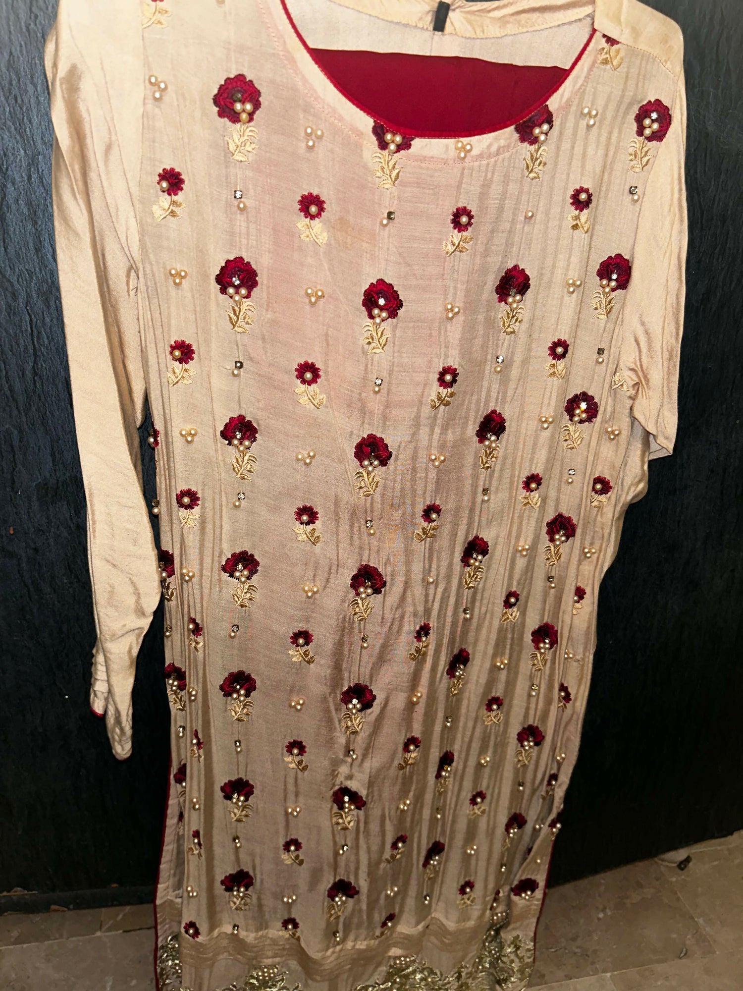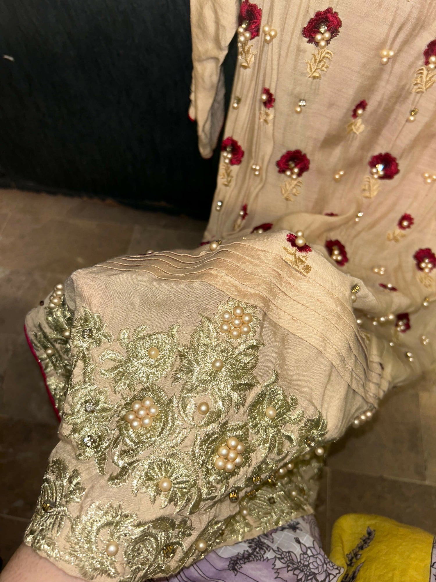 Heavily embroidered sleeves and daaman (hem)