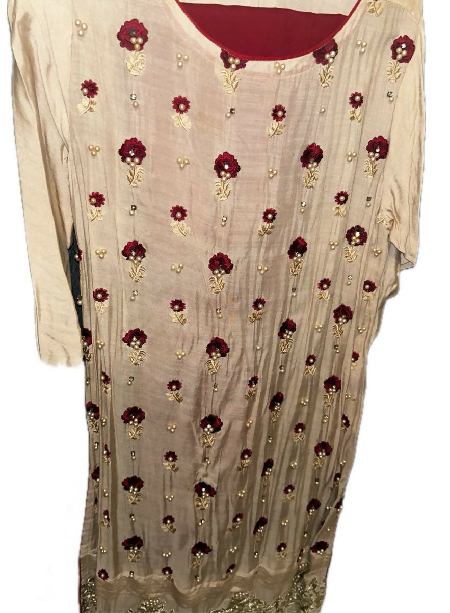 Champagne Gold Embroidered Gharara shirt Set | Women Locally Made Formals | Large | New is backordered and will ship as soon as it is back in stock.