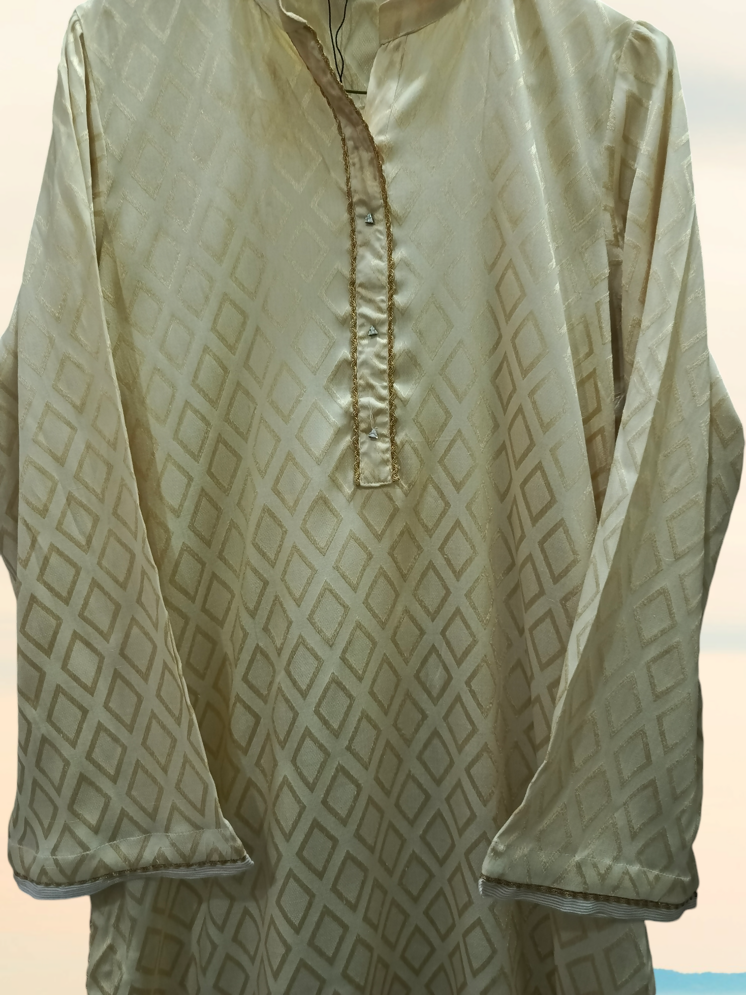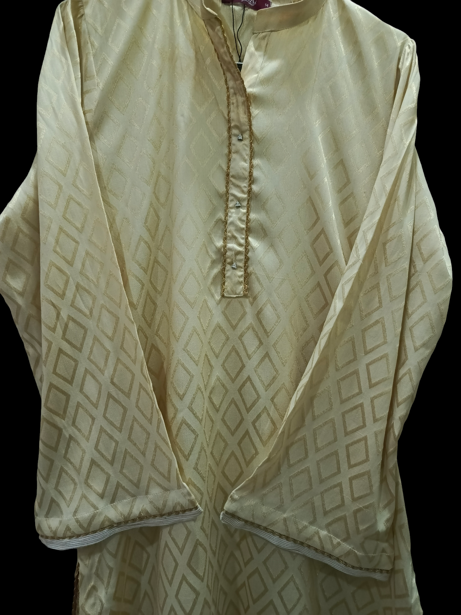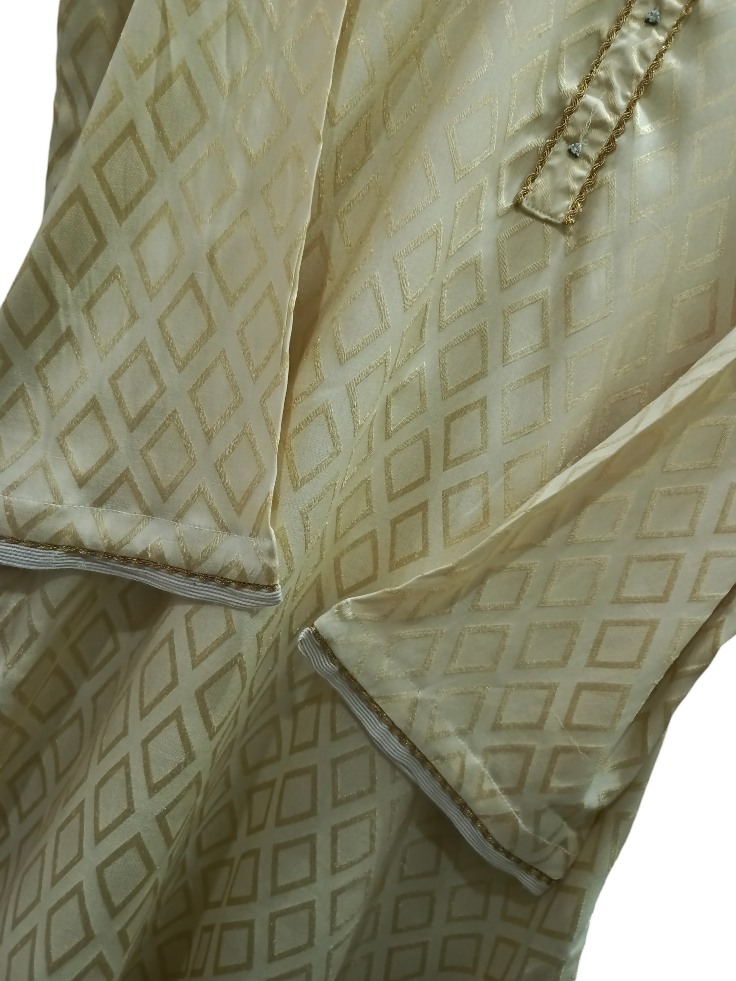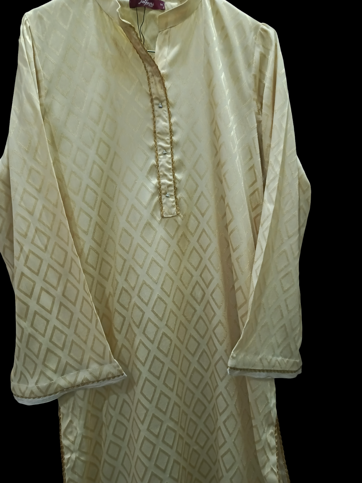 Cream & Golden Women Kurta| Women Locally Made Kurta | Medium | Worn Once