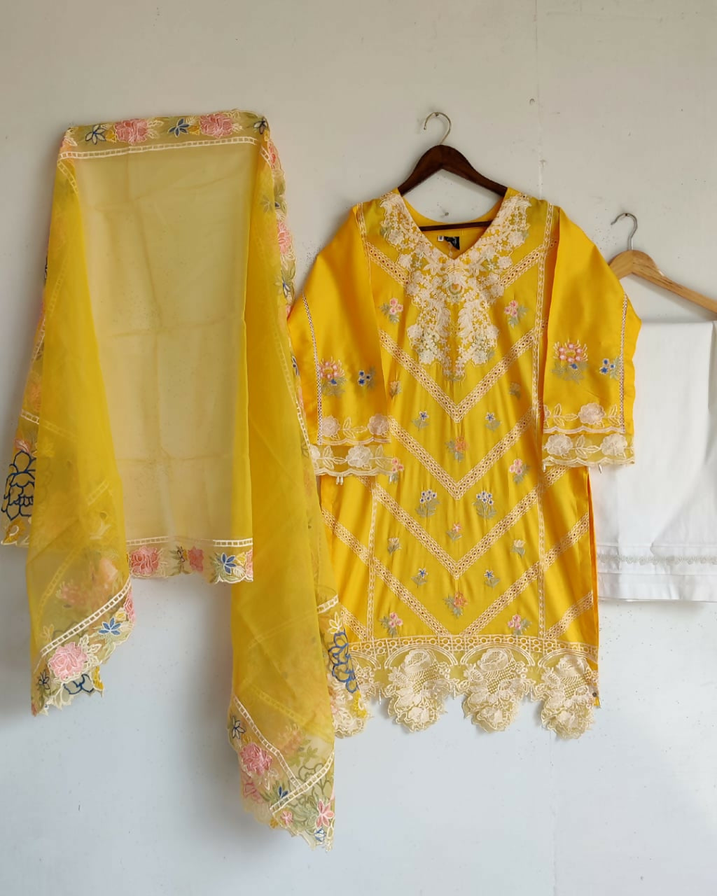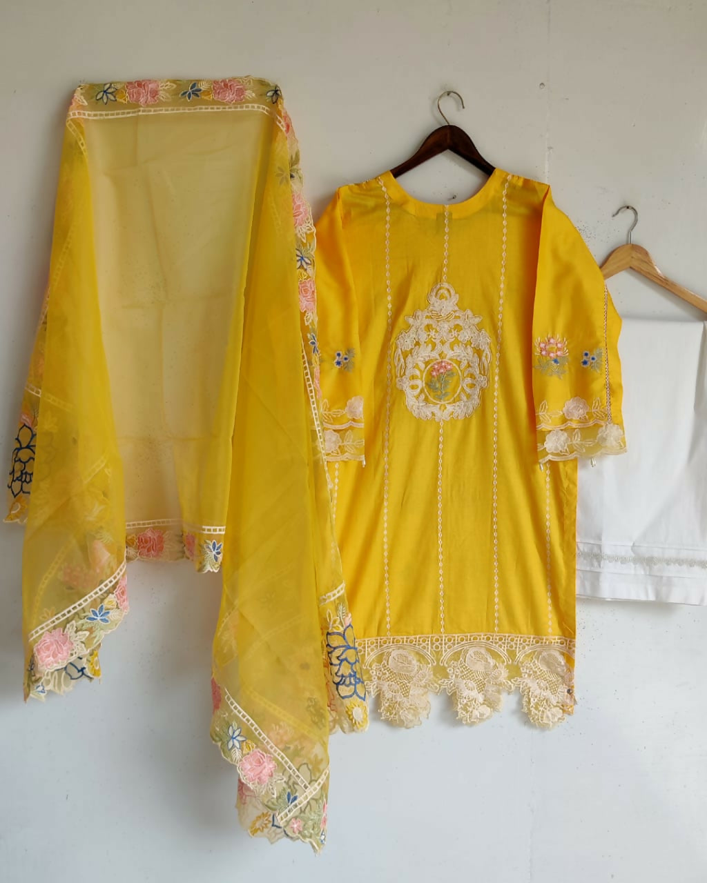 Fully Heavy Embroidered Lawn Front, Back & Sleeves with Chicken Kari Work