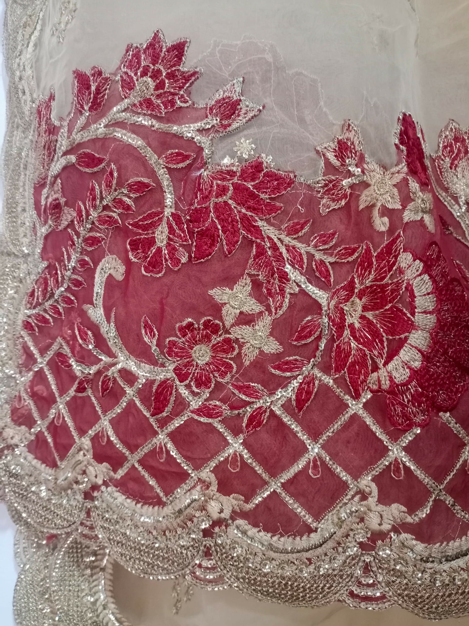 Fabric Chiffon kurti, net lehnga, organza dupat