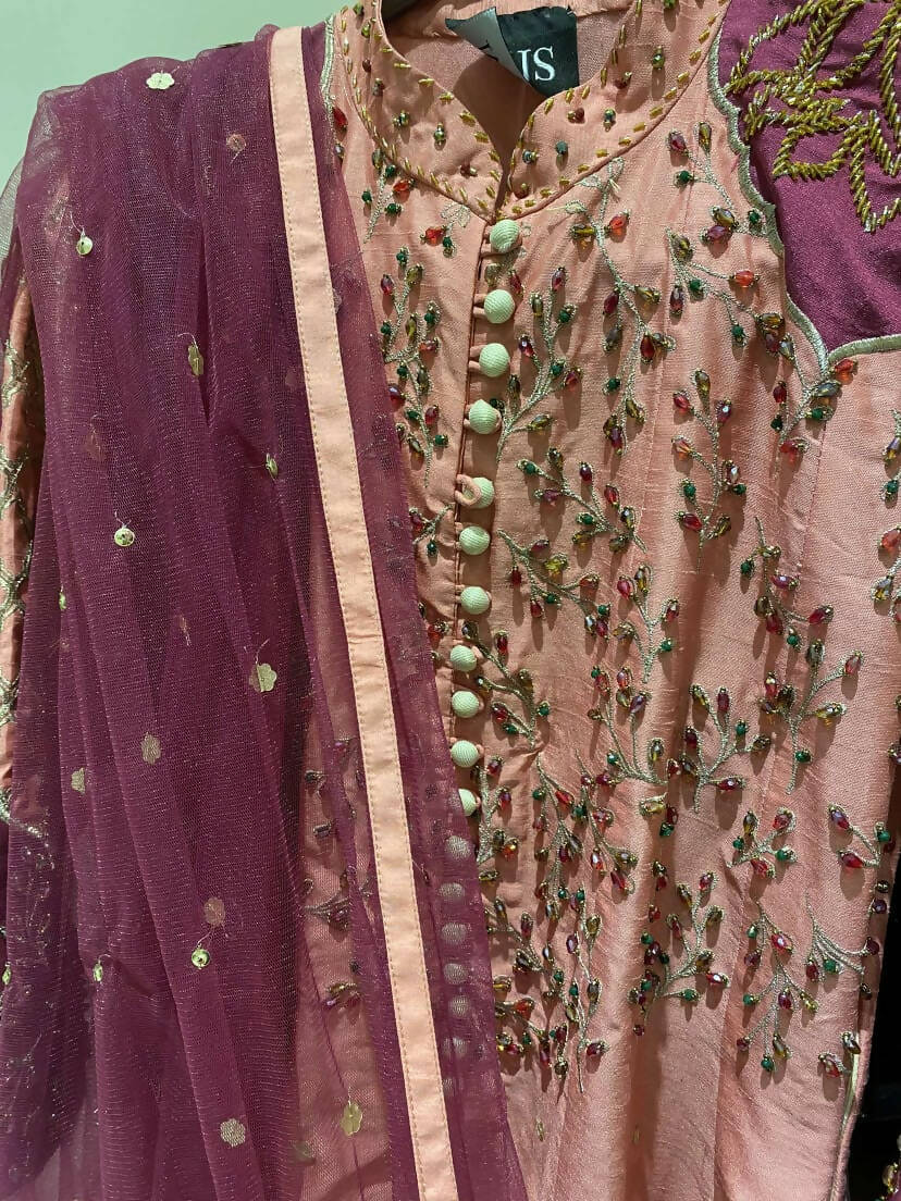 | MATERIAL & MEASUREMENT | Fabric: Raw Silk Size: Medium Condition: 10/10 Measurements Chest 19.5 Length 57-58 Shoulder 15-16 Size: Medium |