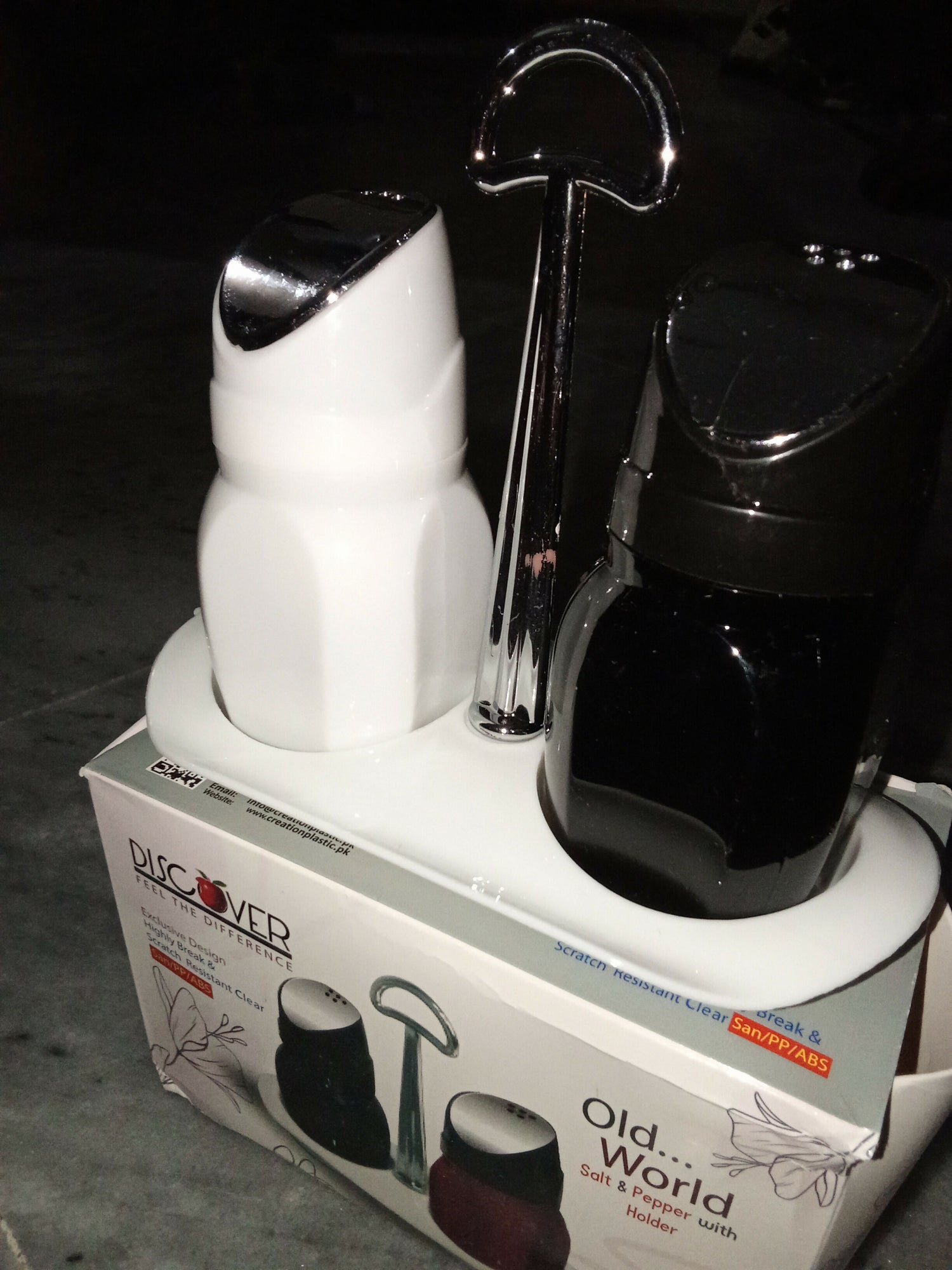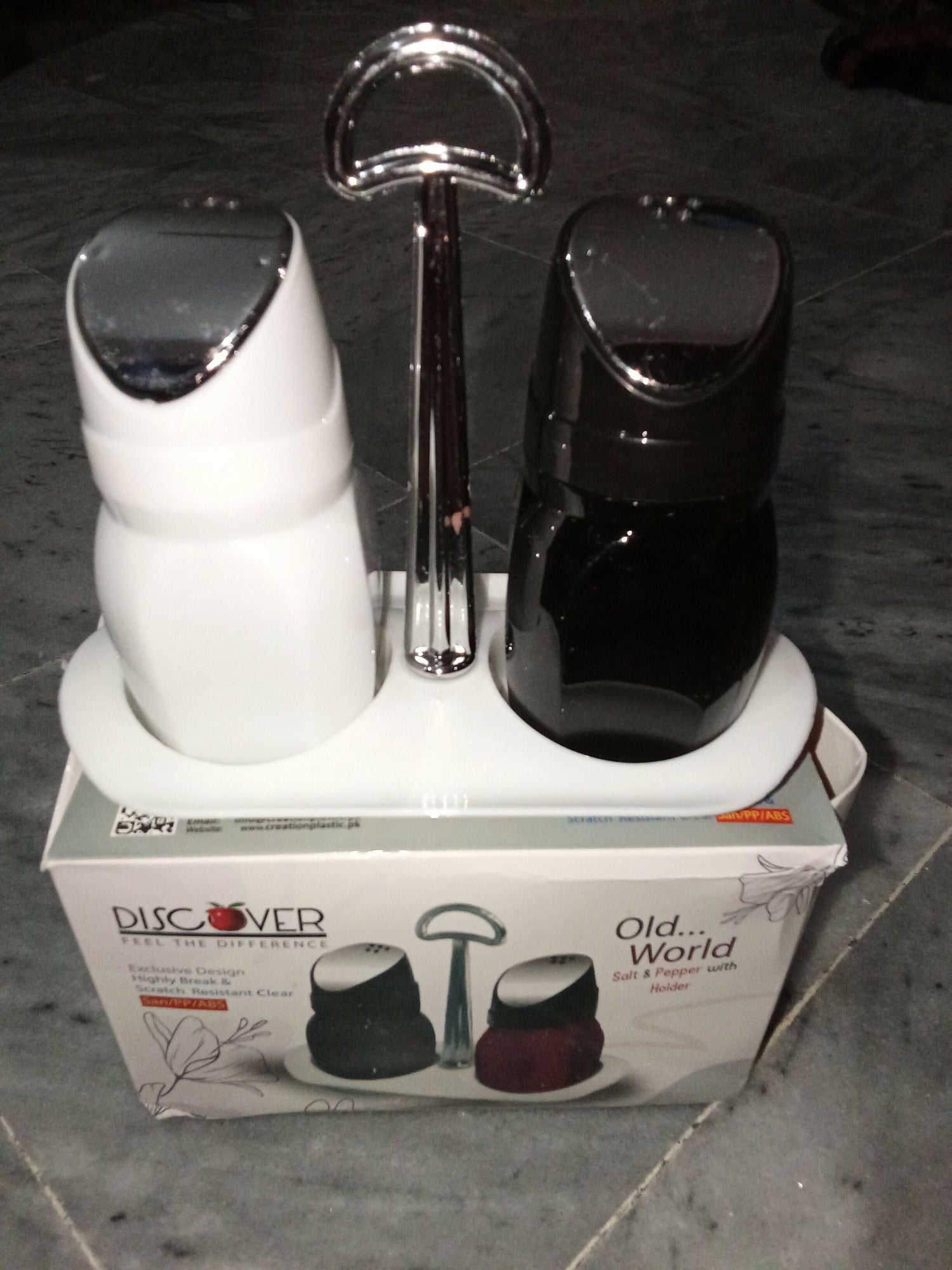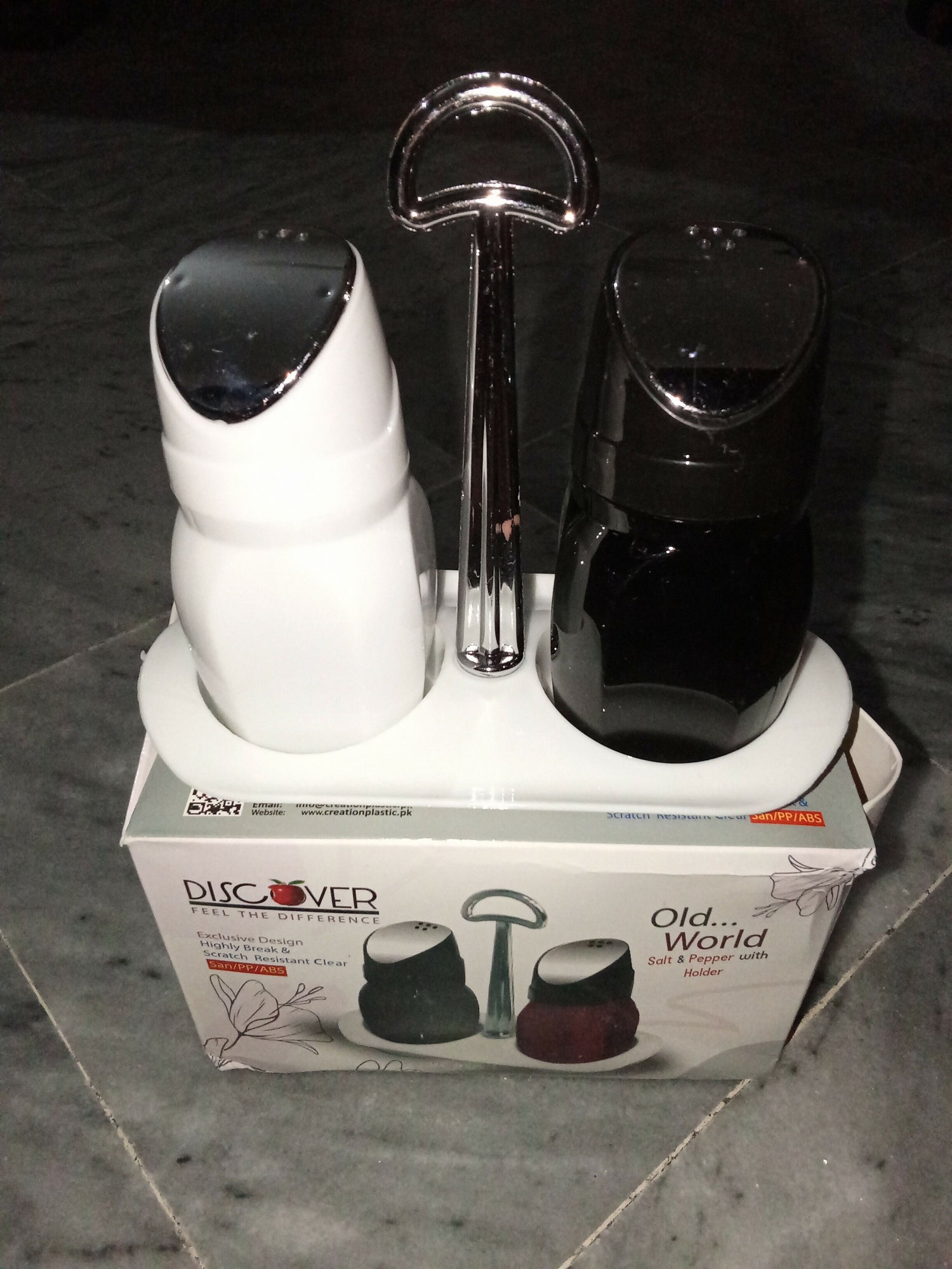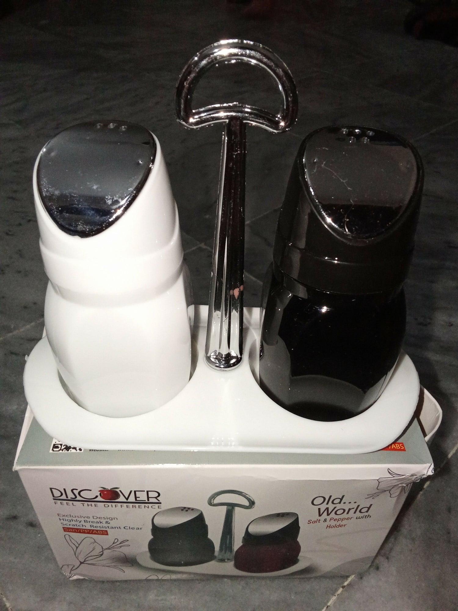 Discover | Salt and Pepper With Holder | For Your Home | Kitchen | Brand New is backordered and will ship as soon as it is back in stock.
