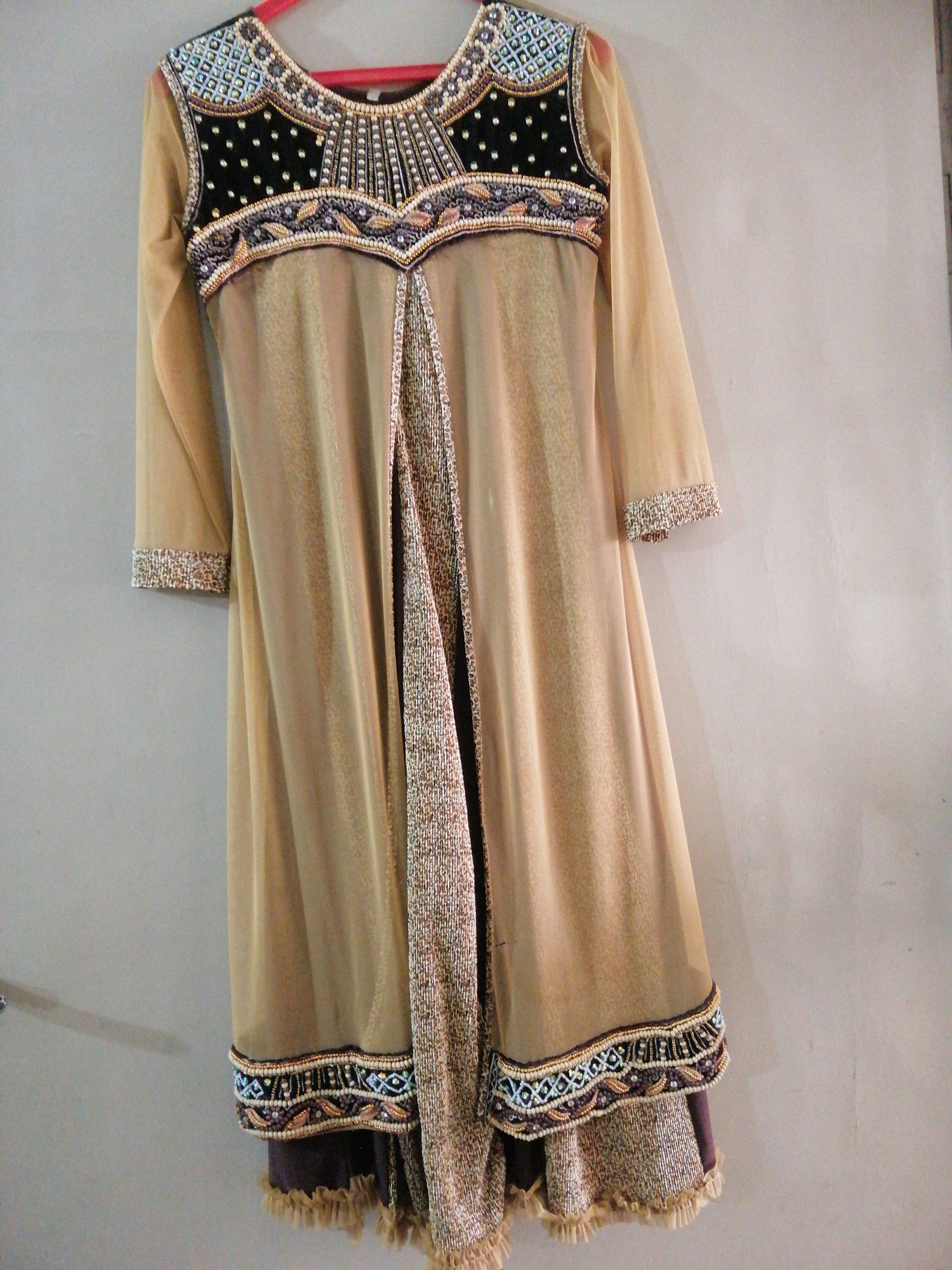 | MATERIAL & MEASUREMENT | Rabri material Light and dark brown contrast Formal wear Worn once |
