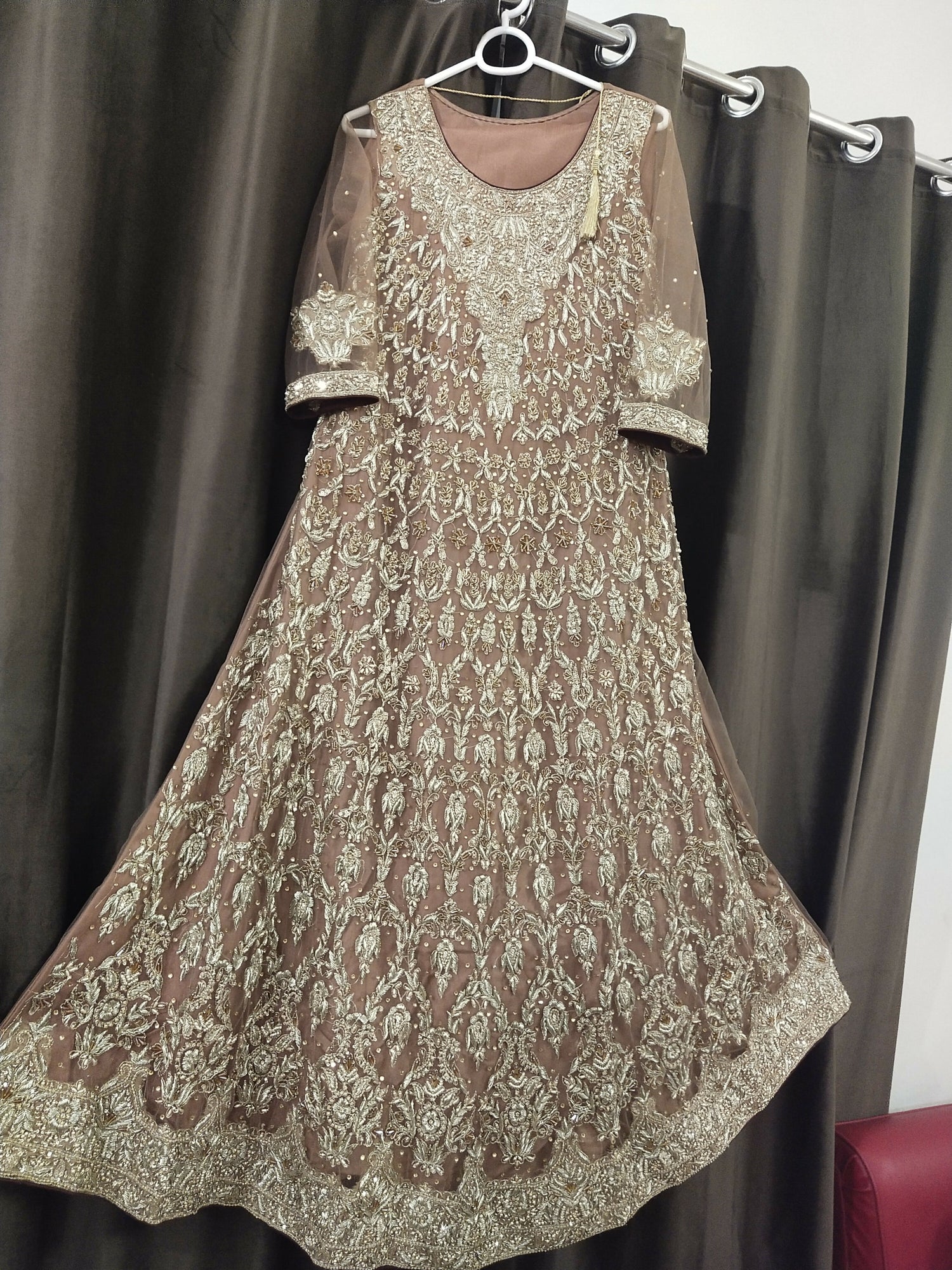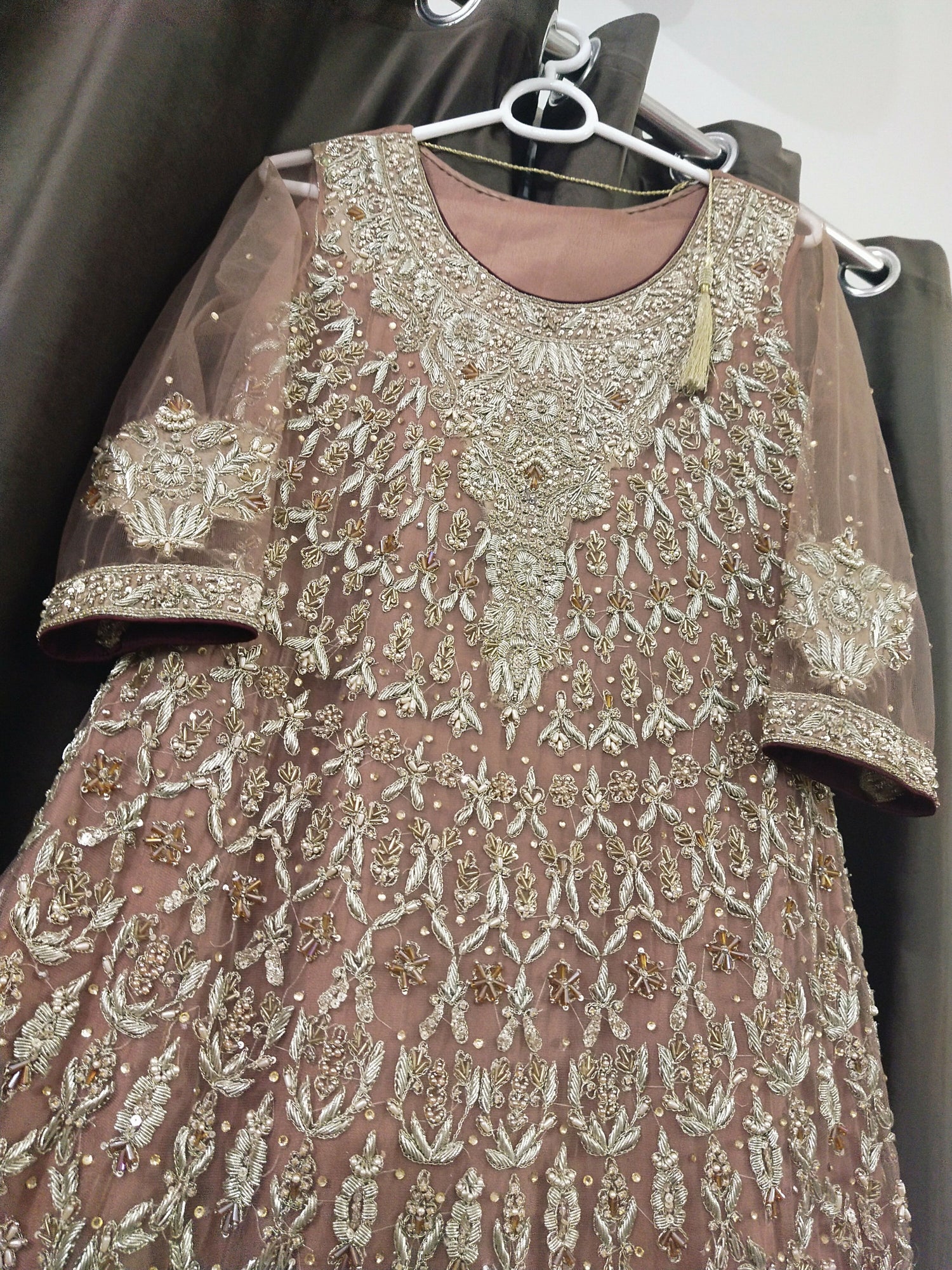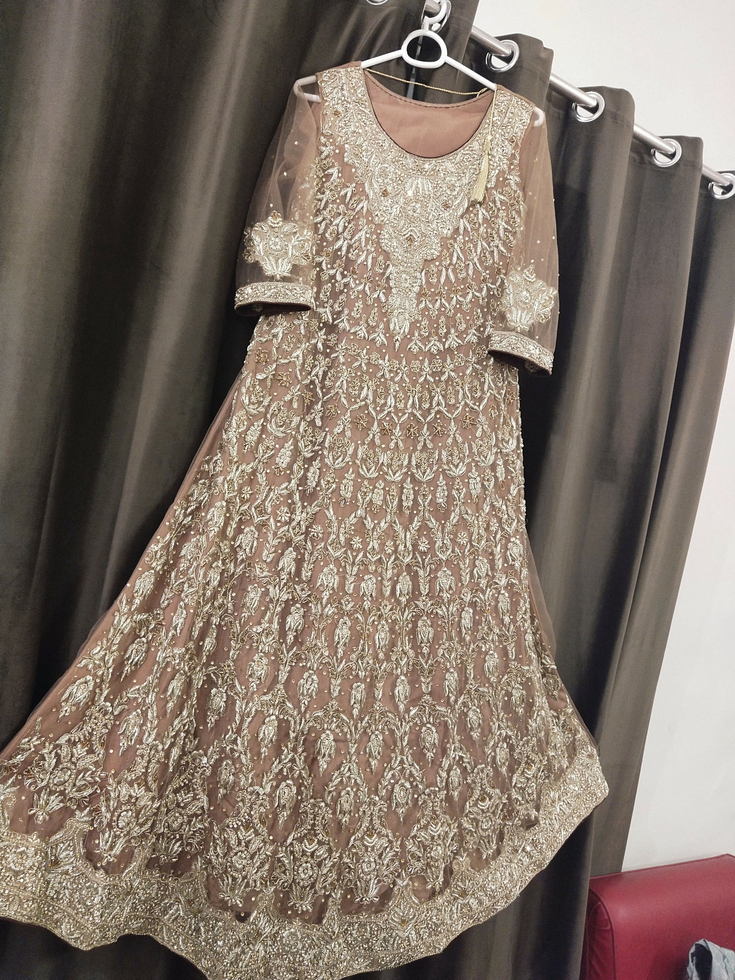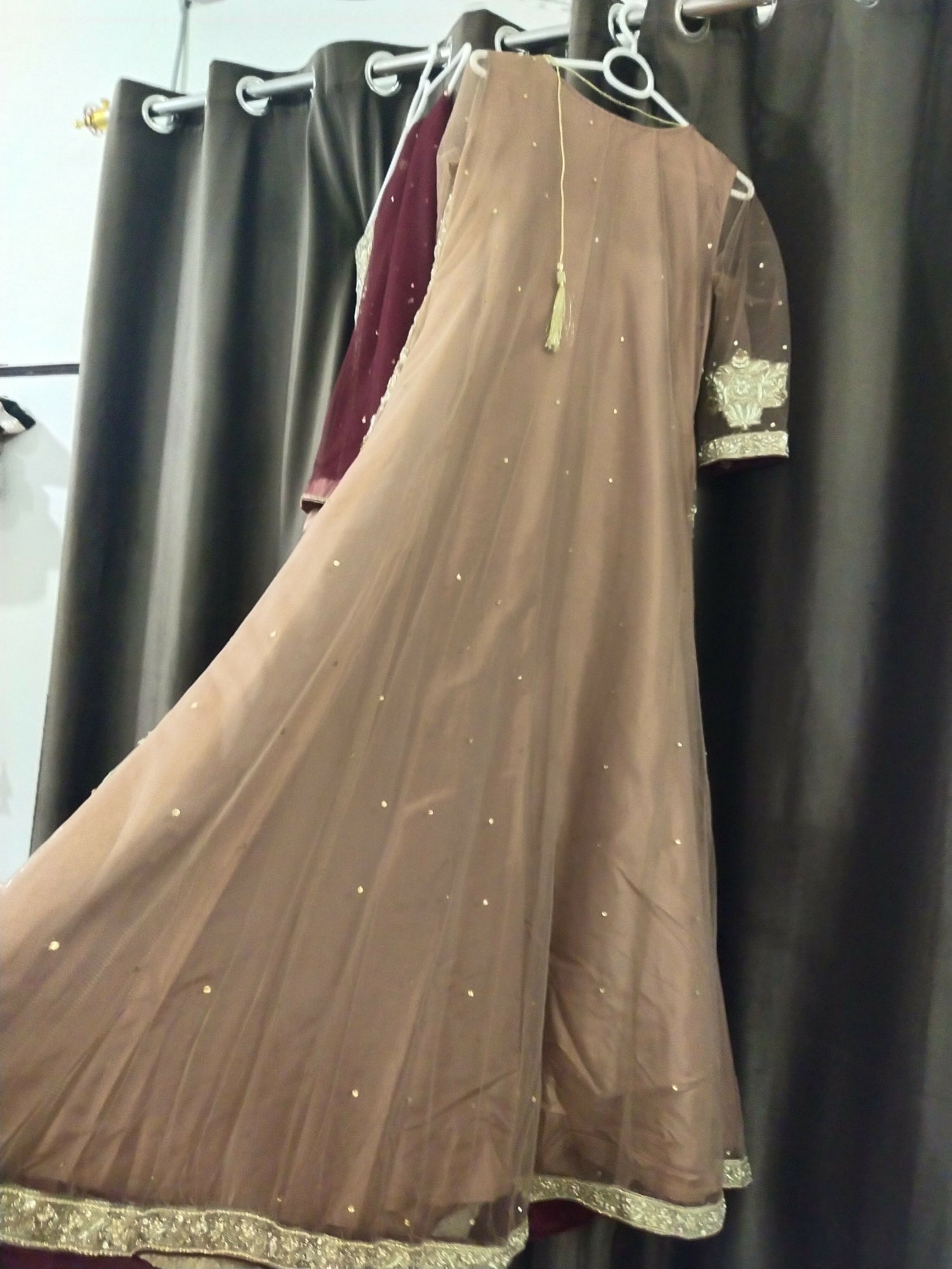 | MATERIAL & MEASUREMENT | Stuff net Maxi length 59 Size small Shoulder 14 Trouser length 37 Bell bottom Dopatta net zarri work |