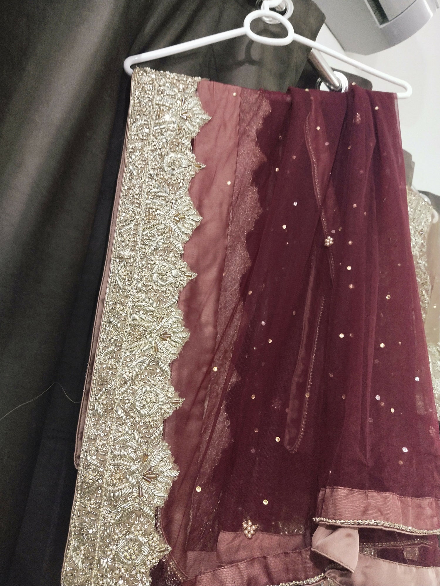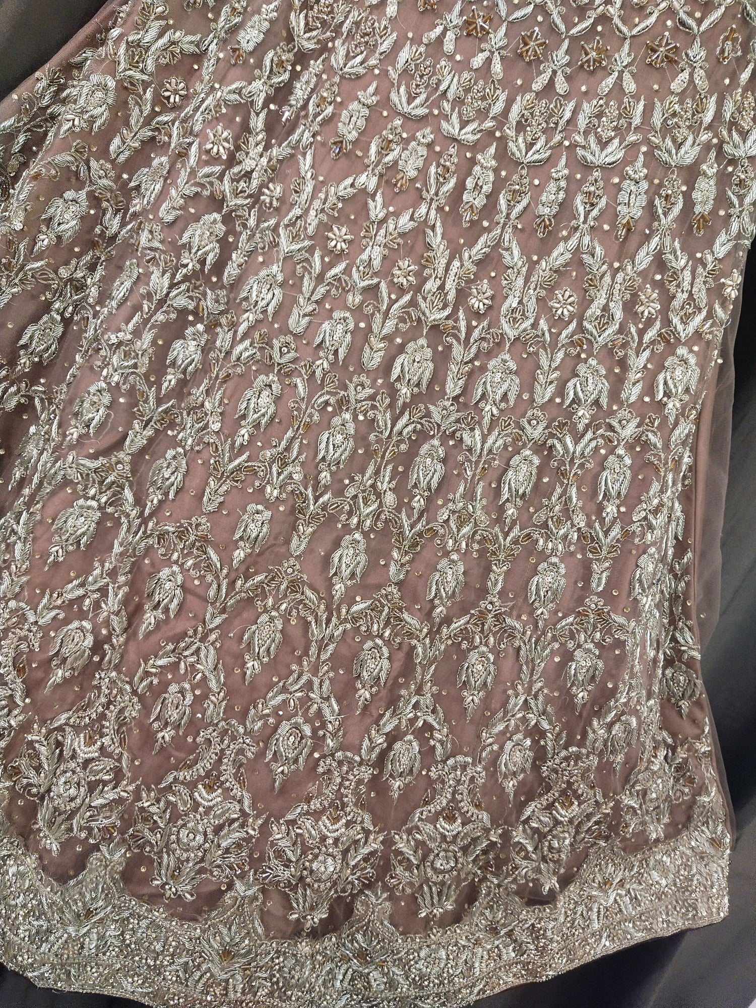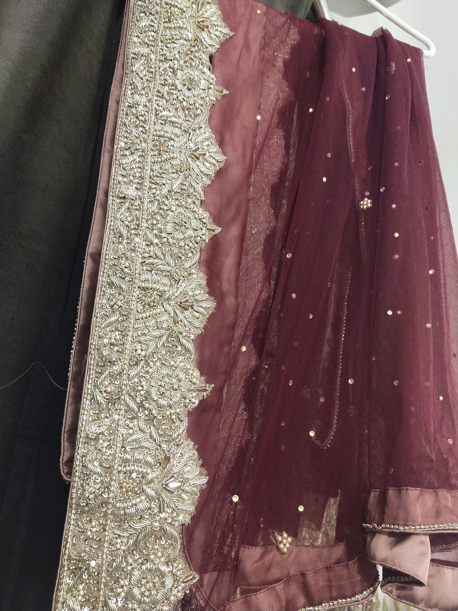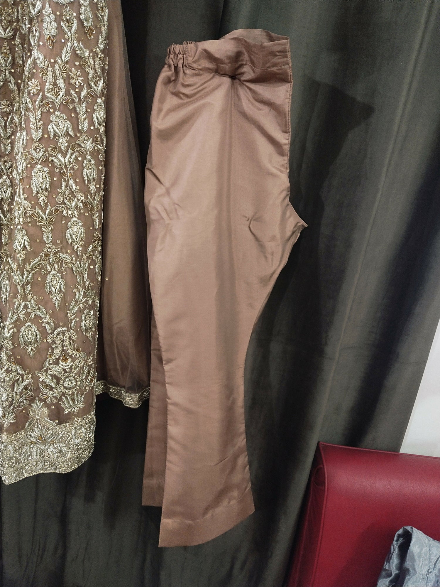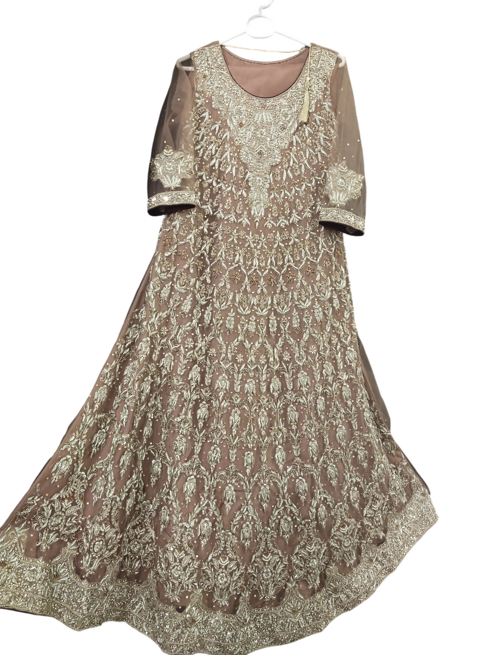 | MATERIAL & MEASUREMENT | Stuff net Maxi length 59 Size small Shoulder 14 Trouser length 37 Bell bottom Dopatta net zarri work |
