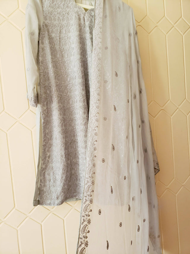 Design: Embroidered shirt with shaffon dupatta and trouser