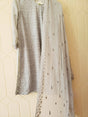 | MATERIAL & MEASUREMENT | material: shaffon measurements inch: shoulder: 16 chest: 21 length: 38 slevees: 19 trouser length: 36 belt: 14 |