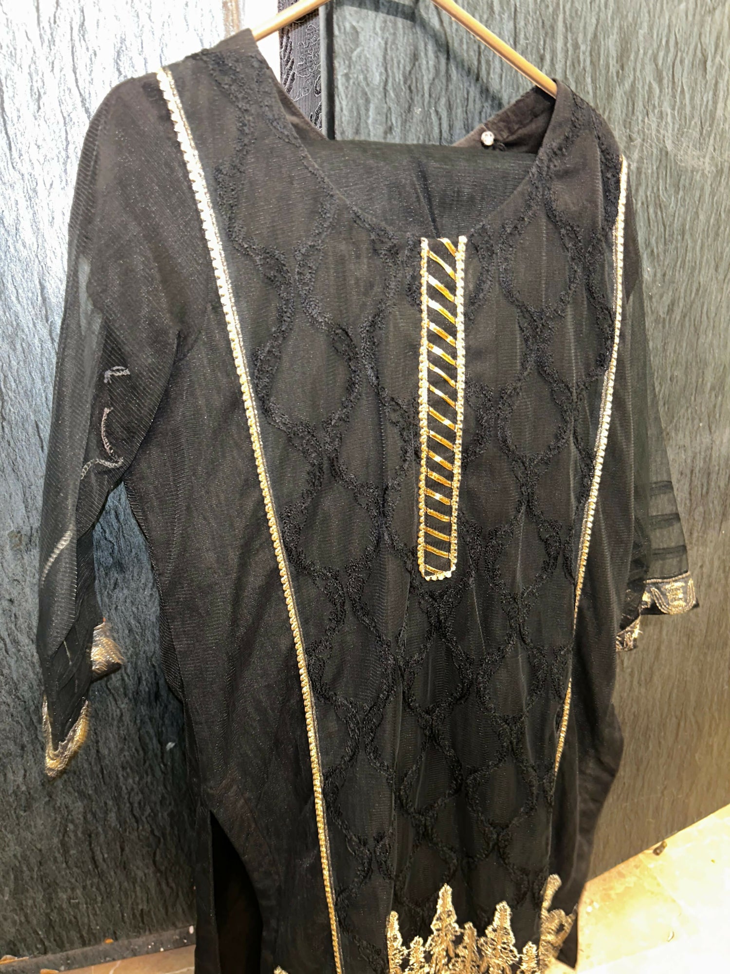 A soft, elegant 3-piece suit perfect for semi-formal summer events. Features front embroidery and a matching embroidered dupatta. Comes with an inner lining for added comfort and modesty. Best suited for sizes Small (chest 36", hip 40").