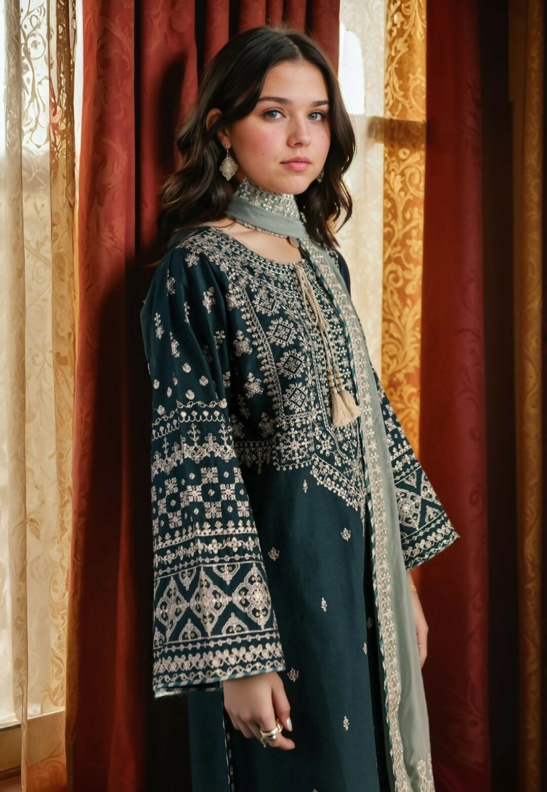Embroidered 3 PC | Women Locally Made Kurta | Size: Medium, Large | Brand New - M is backordered and will ship as soon as it is back in stock.