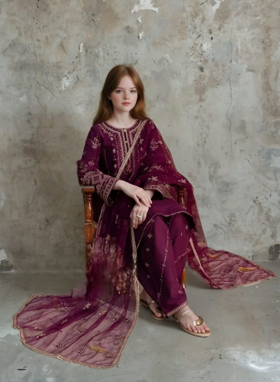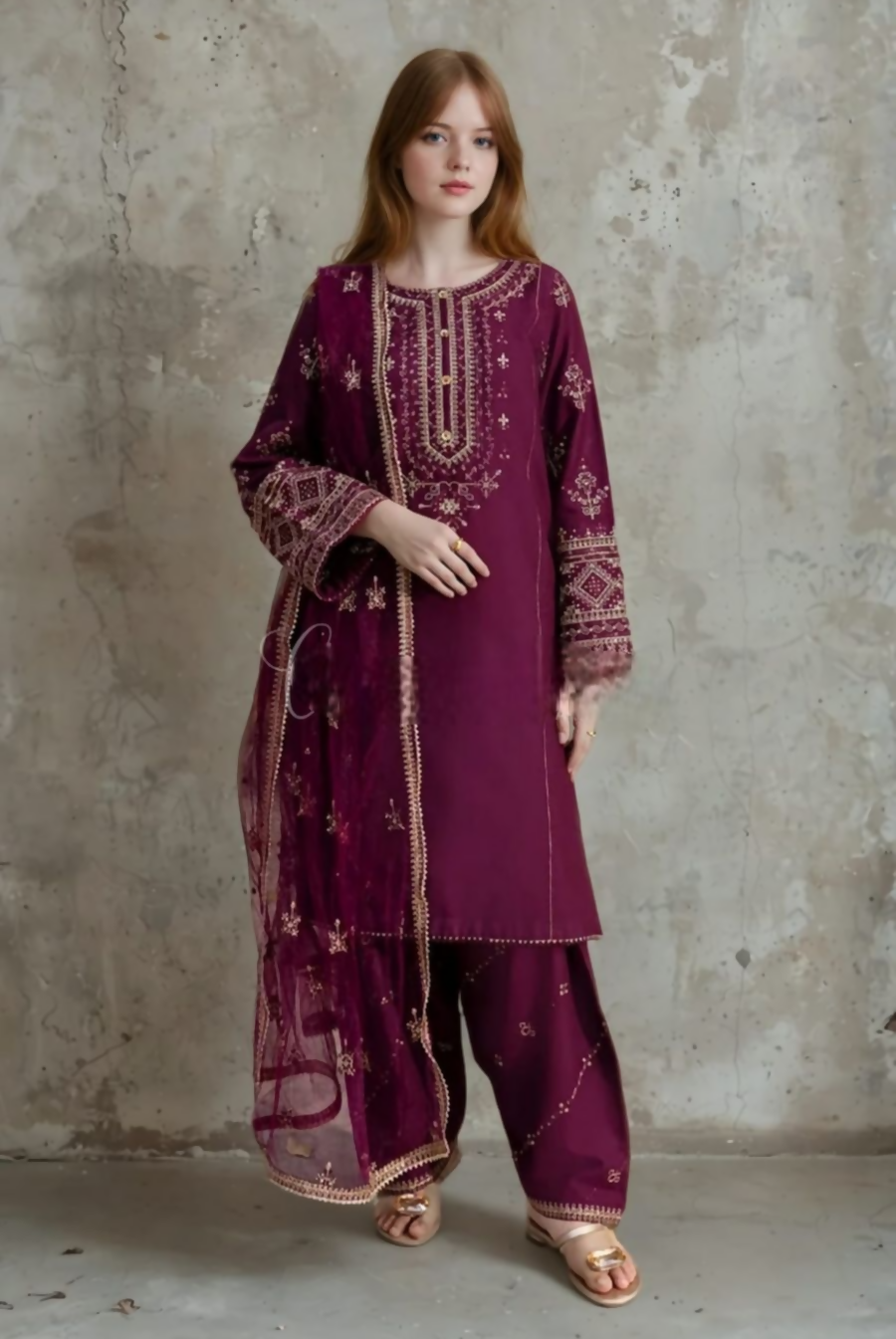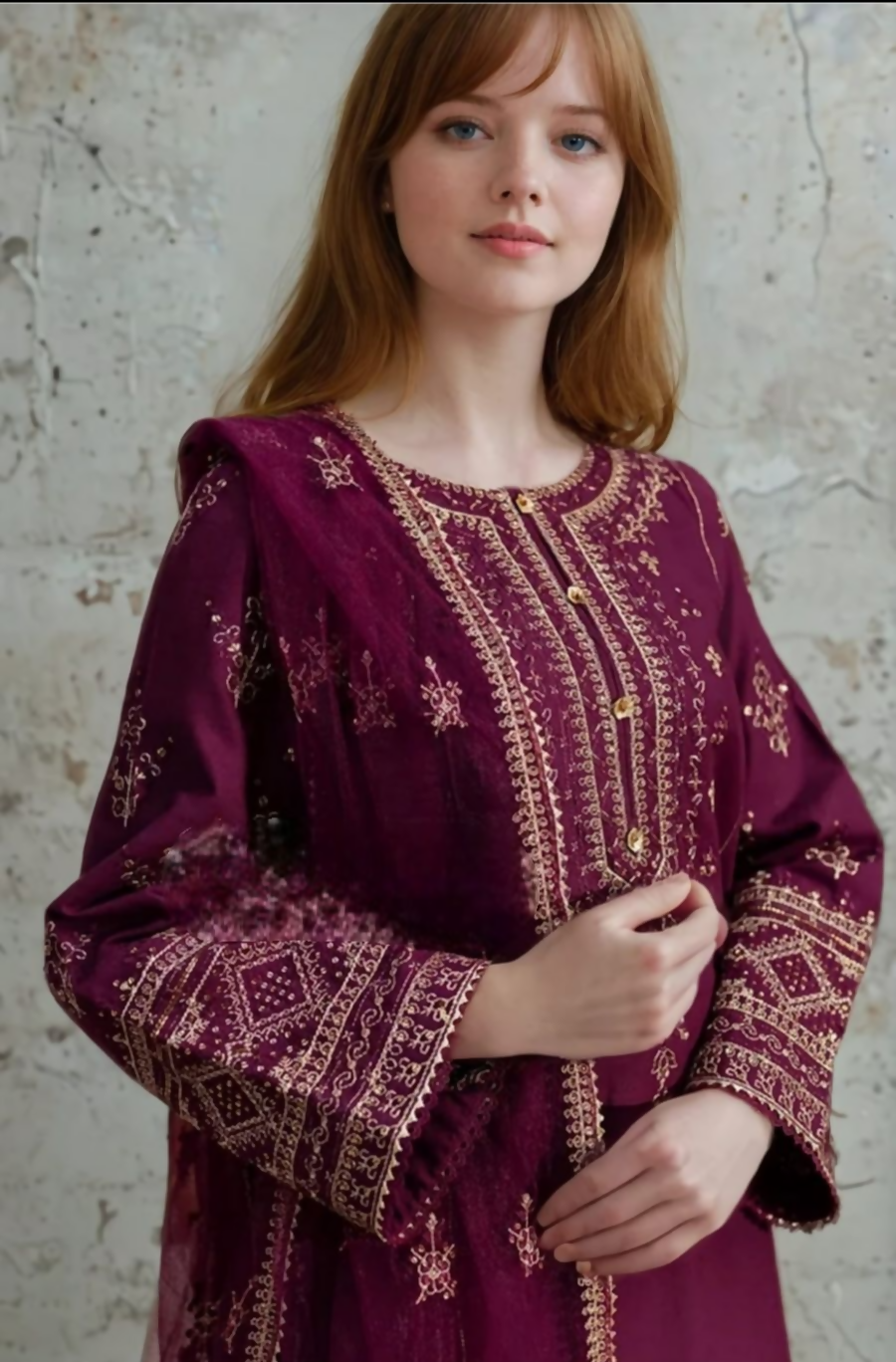 Embroidered 3 PC | Women Locally Made Kurta | Size: Medium, Large | Brand New