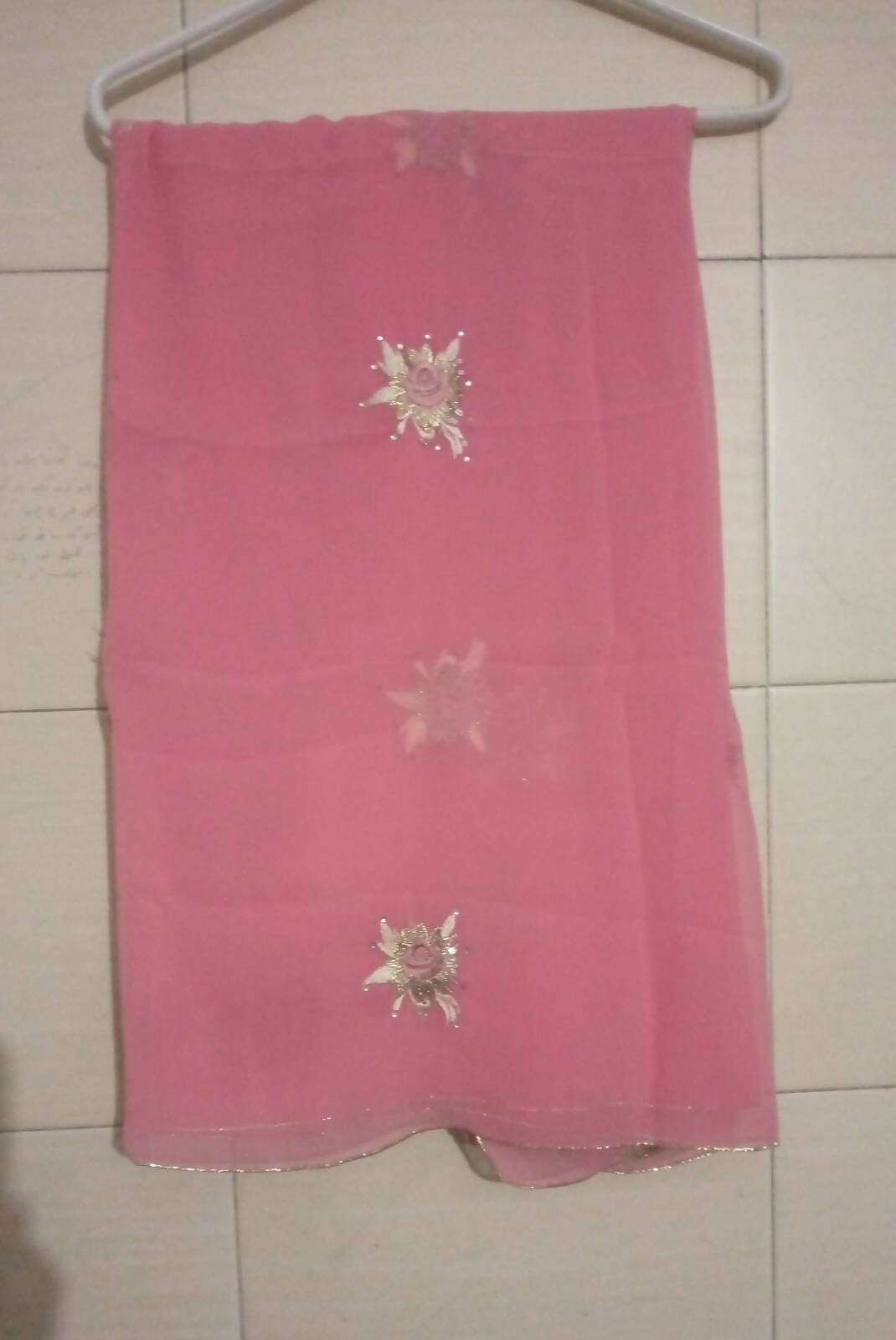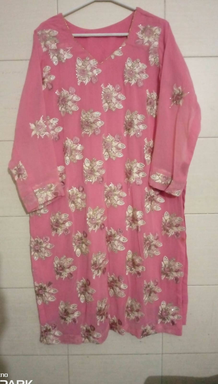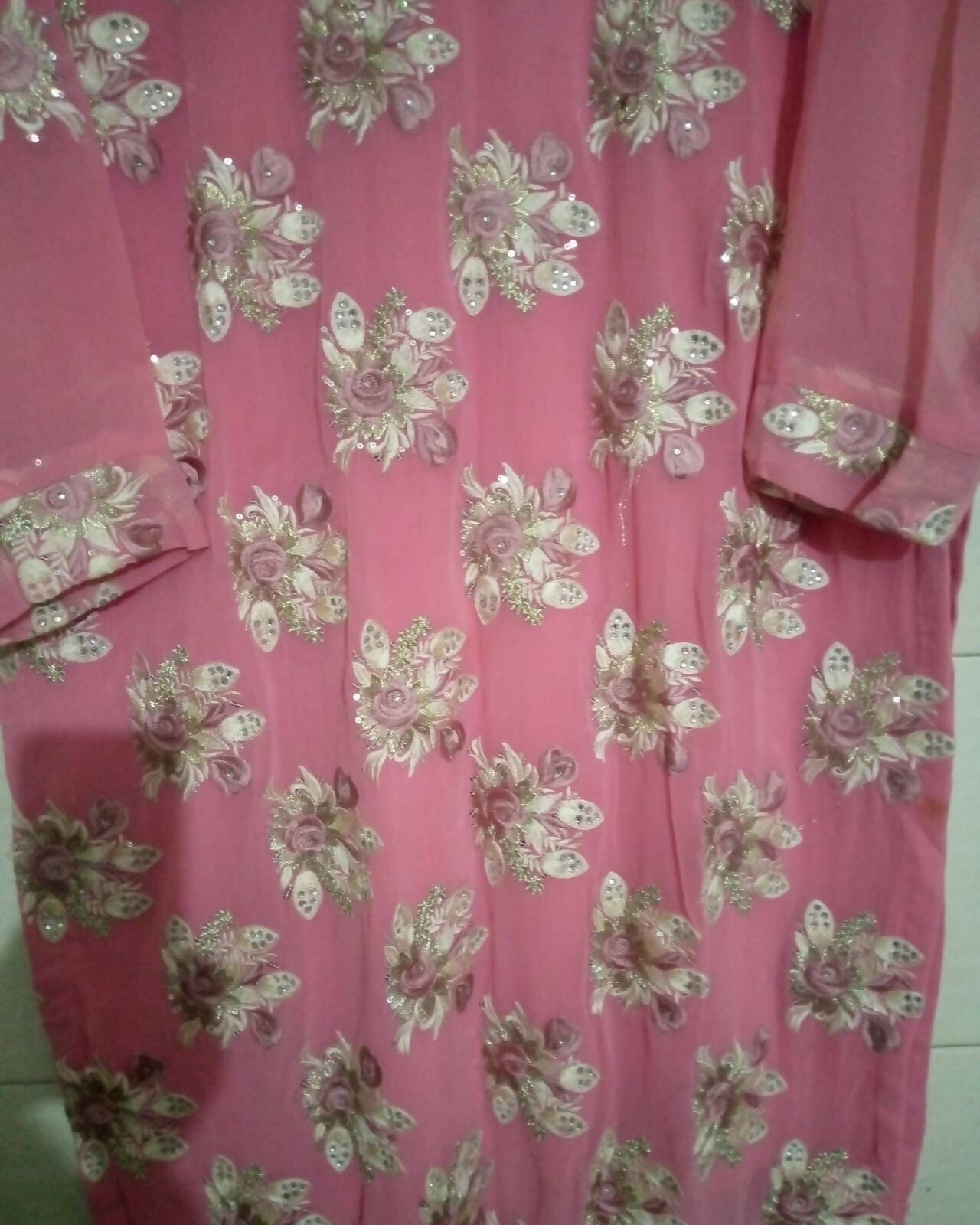 | MATERIAL & MEASUREMENT | Material: chiffon with embroidery and stone Measurement: length: 40 sleeves:20 chest:21 shoulders: 15 shalwar length:38 |