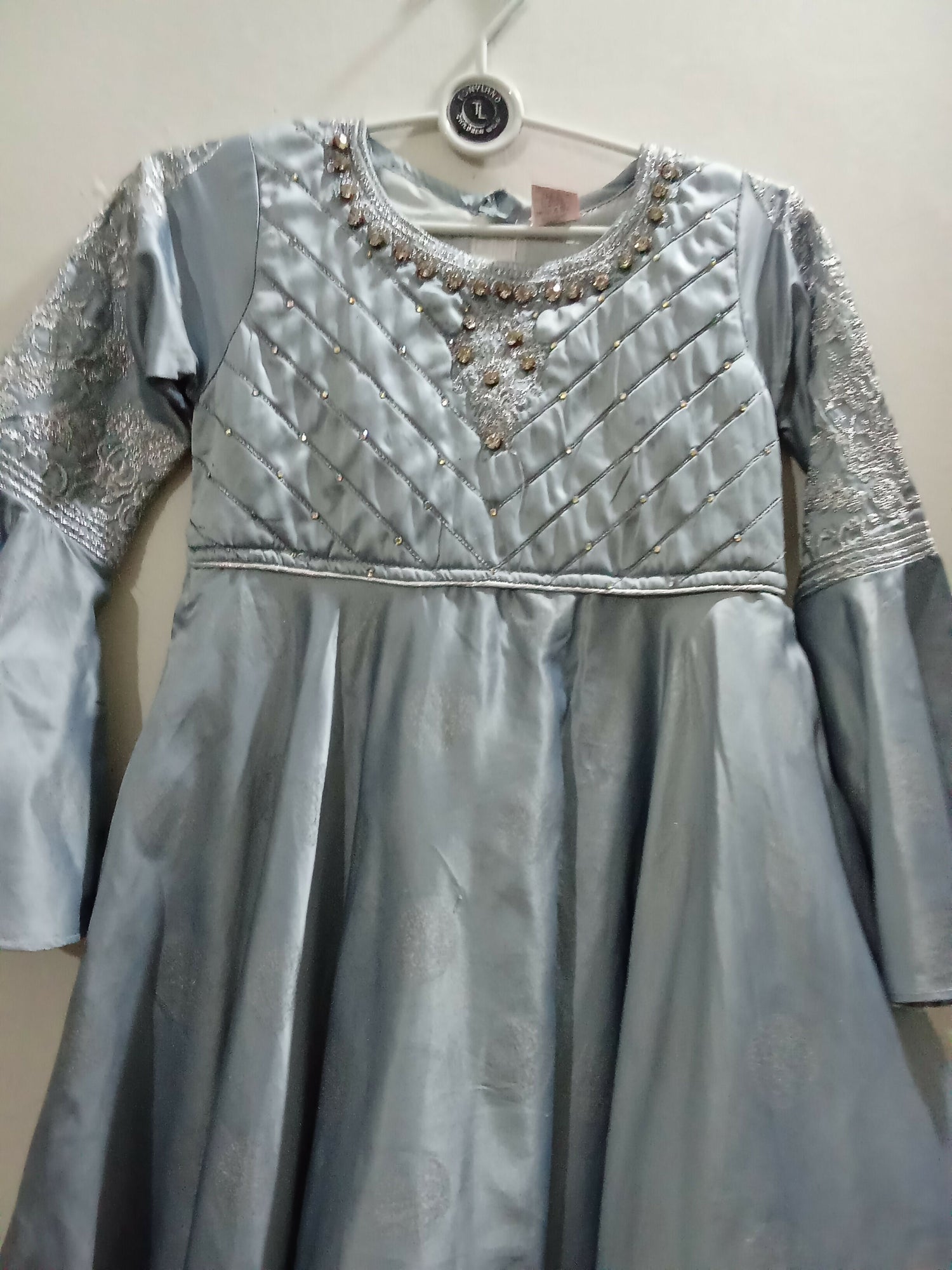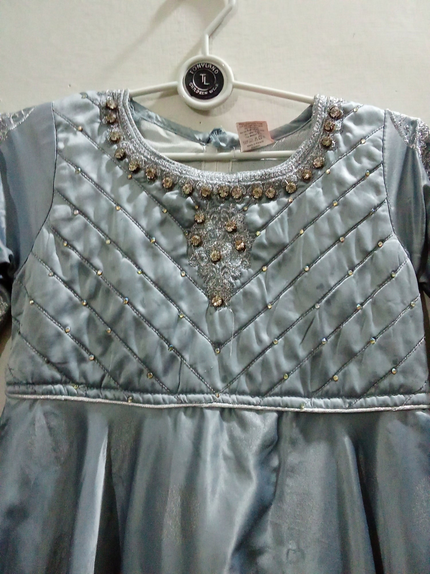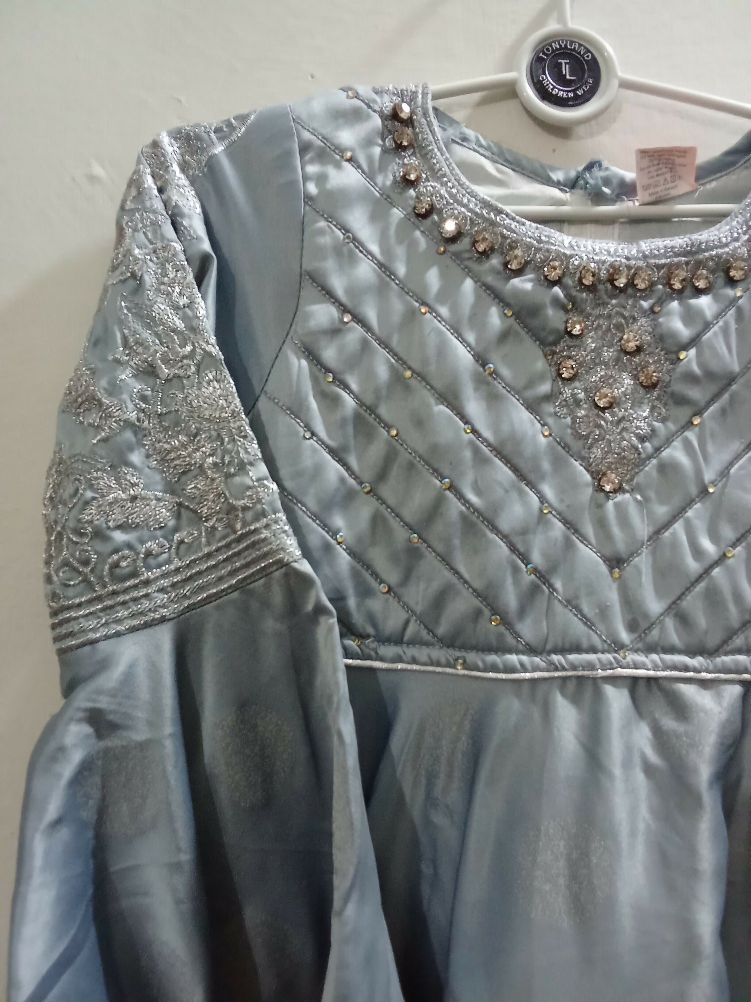 Embroidered Silk Grey 2 Pc Suit | Girls Skirts & Dresses | Size :34 | Worn Once