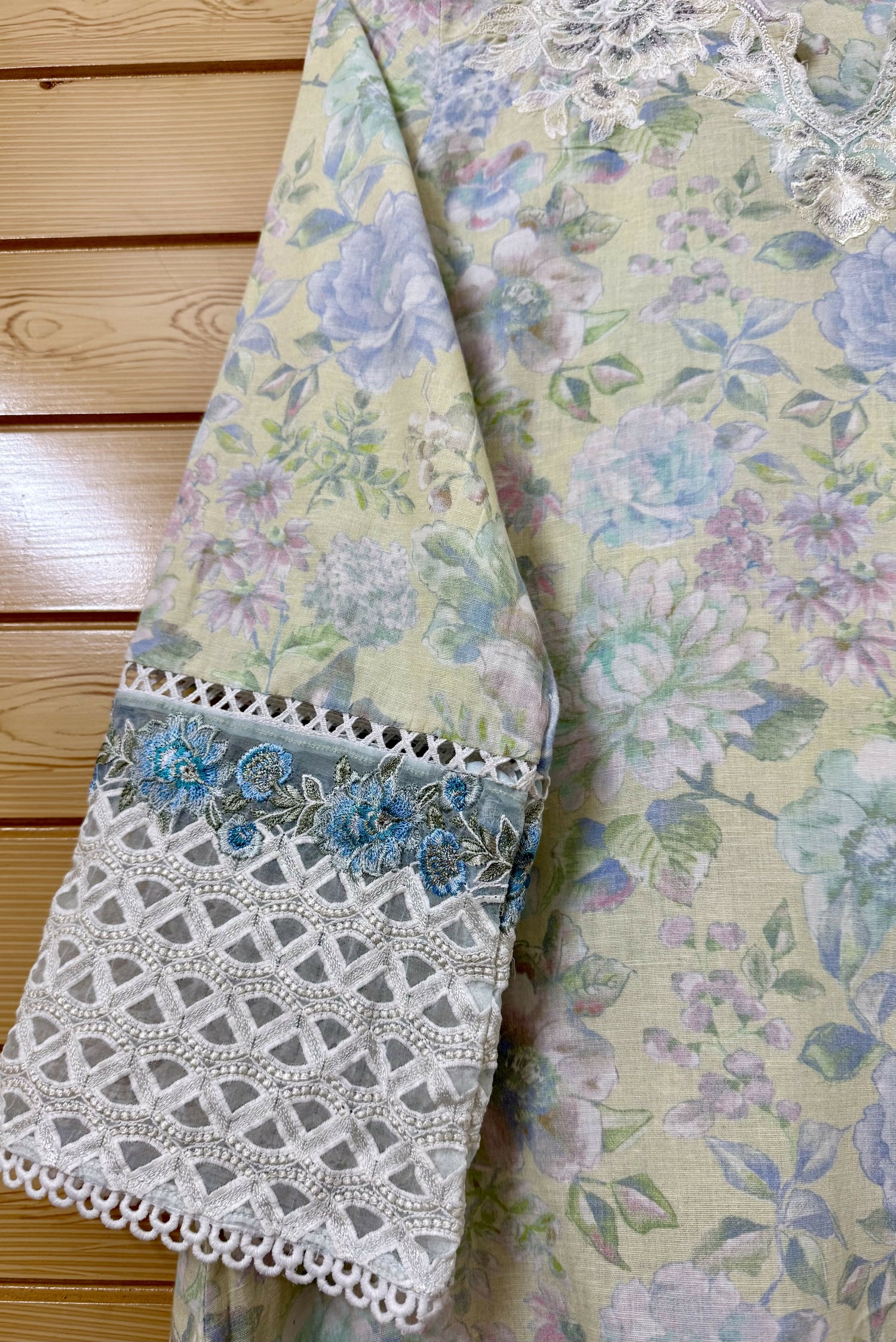 | MATERIAL & MEASUREMENT | Material: Lawn Measurement: Trouse Opening: 11 Trouser Length: 32 Trouser Waist: 30 Shirt Length: 44 Shoulder: 13.5 Sleeves Length: 22 Sleeves Opening: 7 Chest: 19 |
