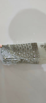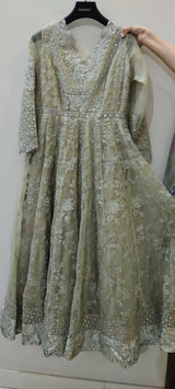 | MATERIAL & MEASUREMENT | organza fancy formal frock Length 54 Chest 19.5 Shoulder 14 Sleeves length 22 |