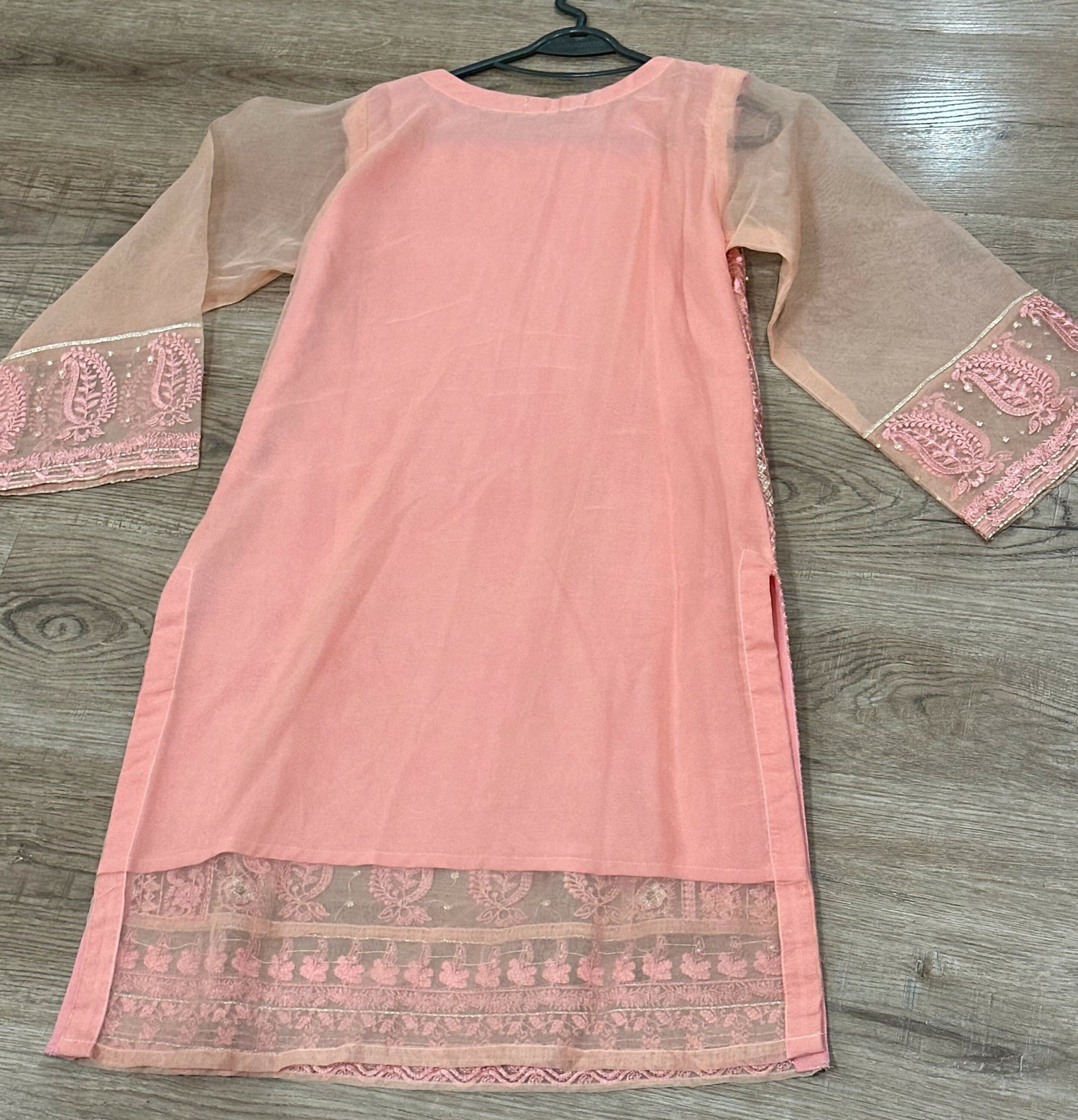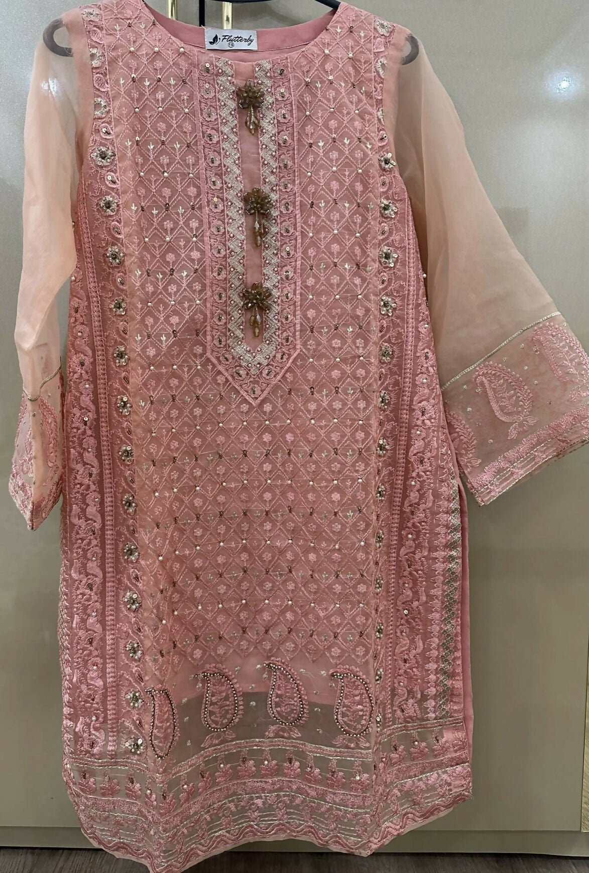 Flutterby | Pink Organza Embellished Shirt | Women Formals | X-Small | Worn Once