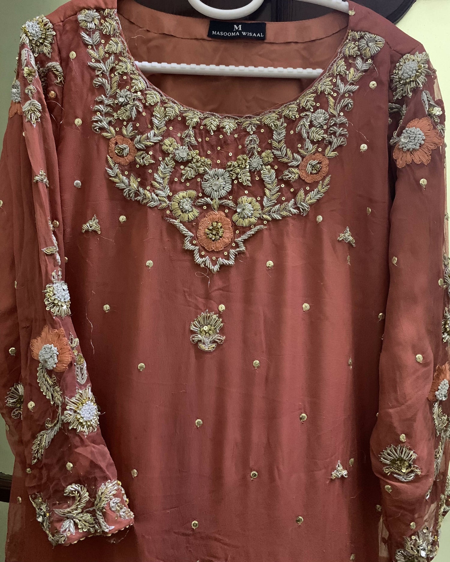 Peach fancy 3 Pc Suit | Women Locally Made Formals | Medium | Worn Once