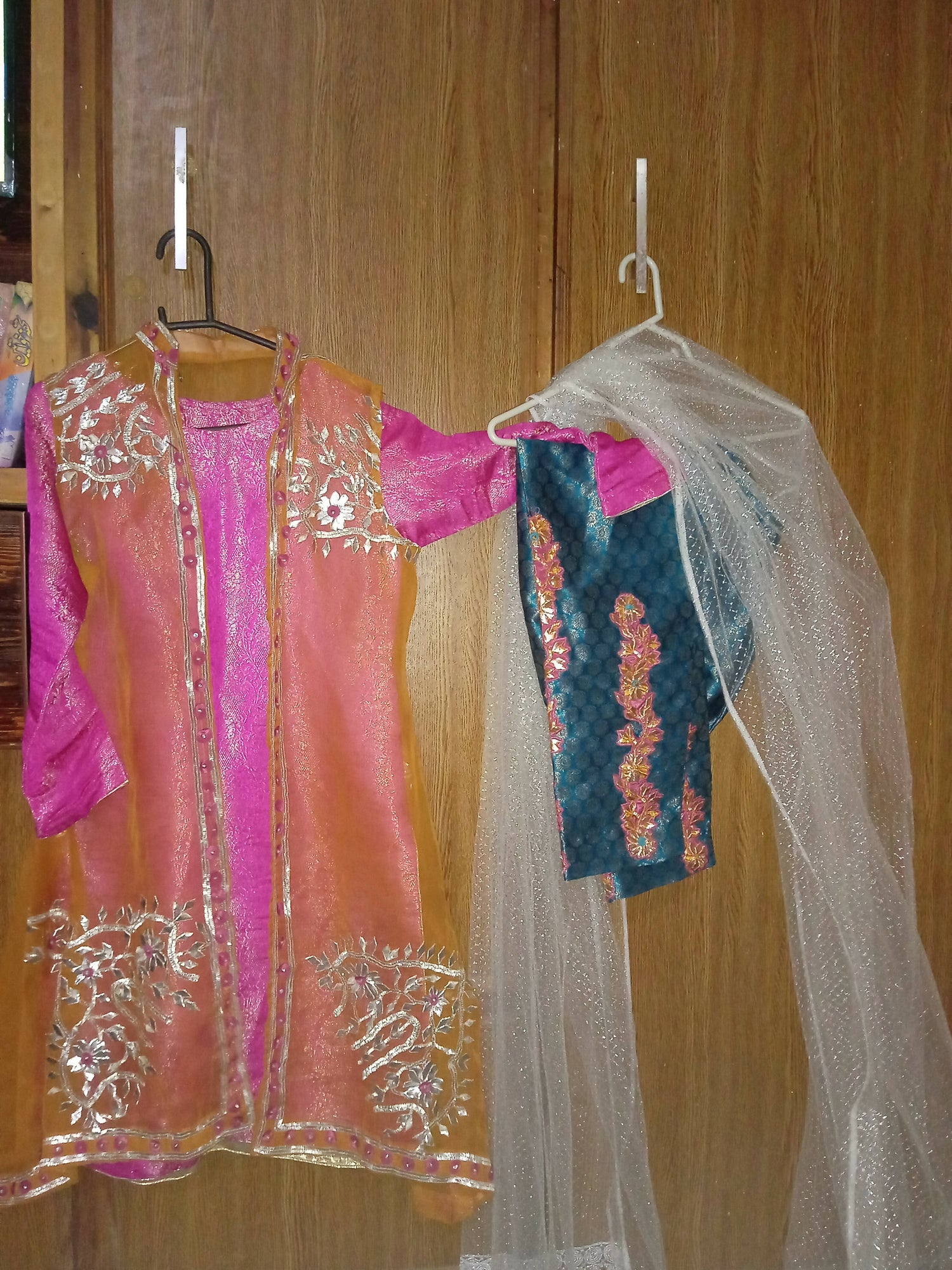 Fabric / Material: Jamawar kameez with gutta kinari reshmi gaon frock with open