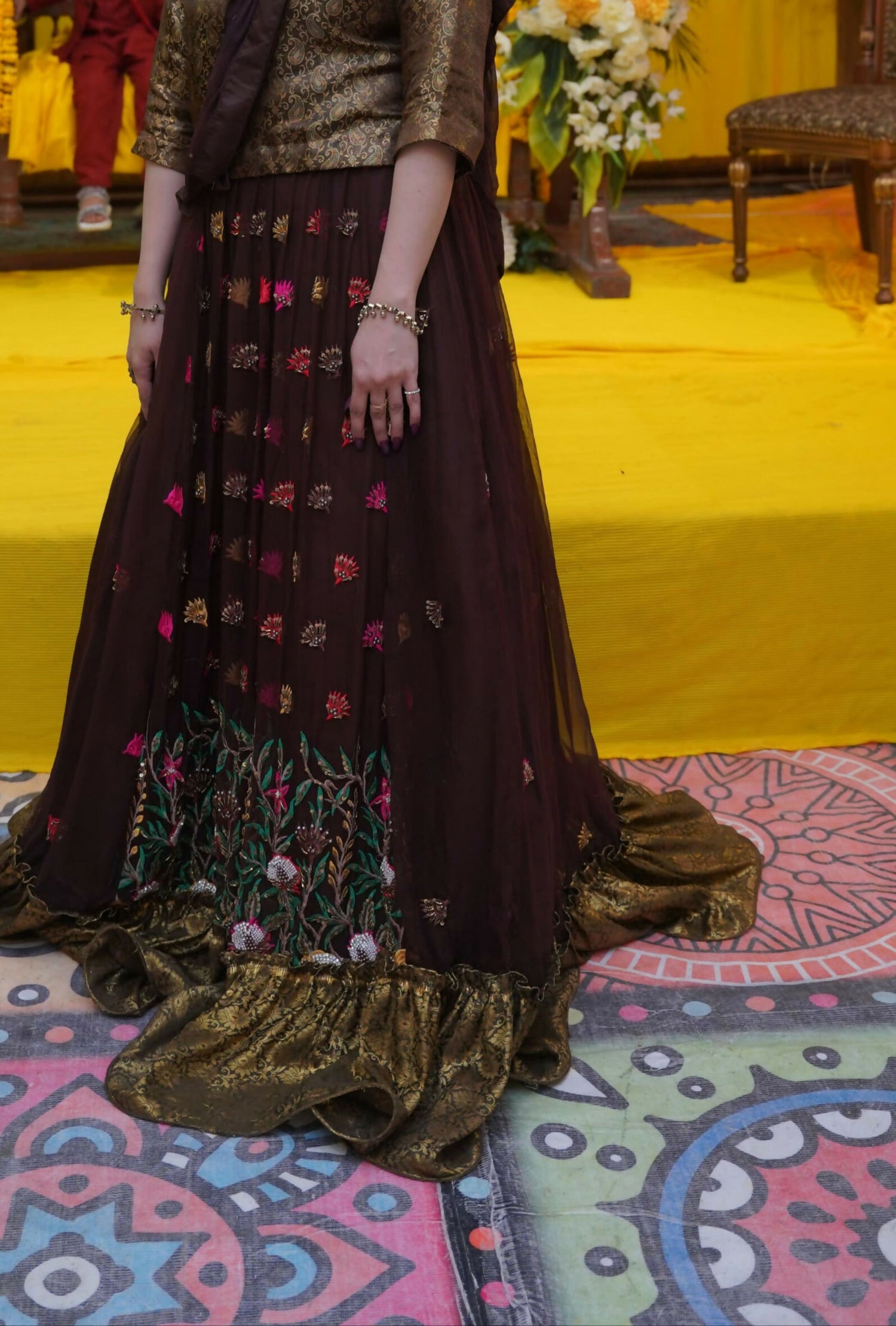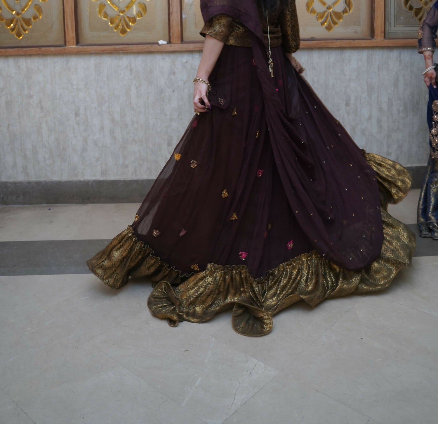 | MATERIAL & MEASUREMENT | Shirt janawar length 18 inch Chest size 38 inch Bazoo size 16 inch Dupatta shiffoon with piping and stones spread Lahnga full embroidered and stones with more than 120 flare Condition 10/10 Worn once for 3 hours Self designed Cost 13000 including 5000 stitching Selling price 8000 |