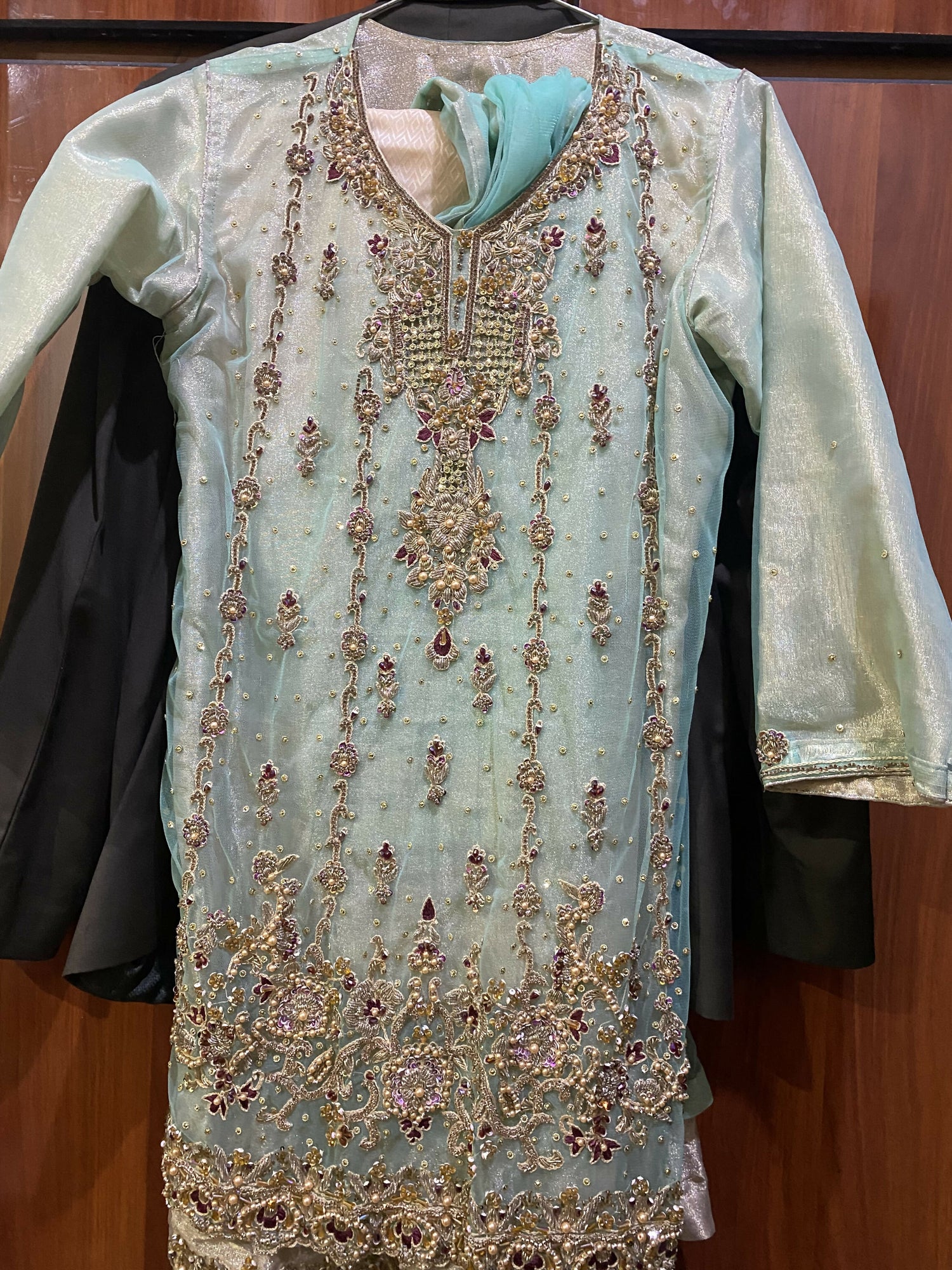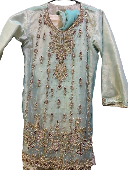 | MATERIAL & MEASUREMENT | Raw silk suit Chest 32,34 Sleeve length 18 Shirt length 38 Trouser length 39 |