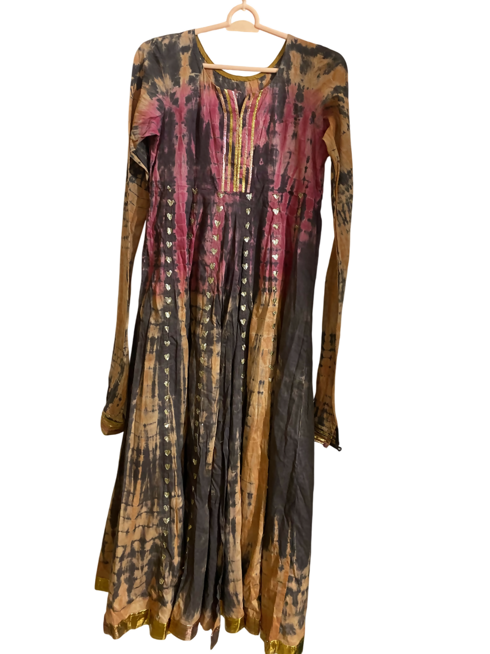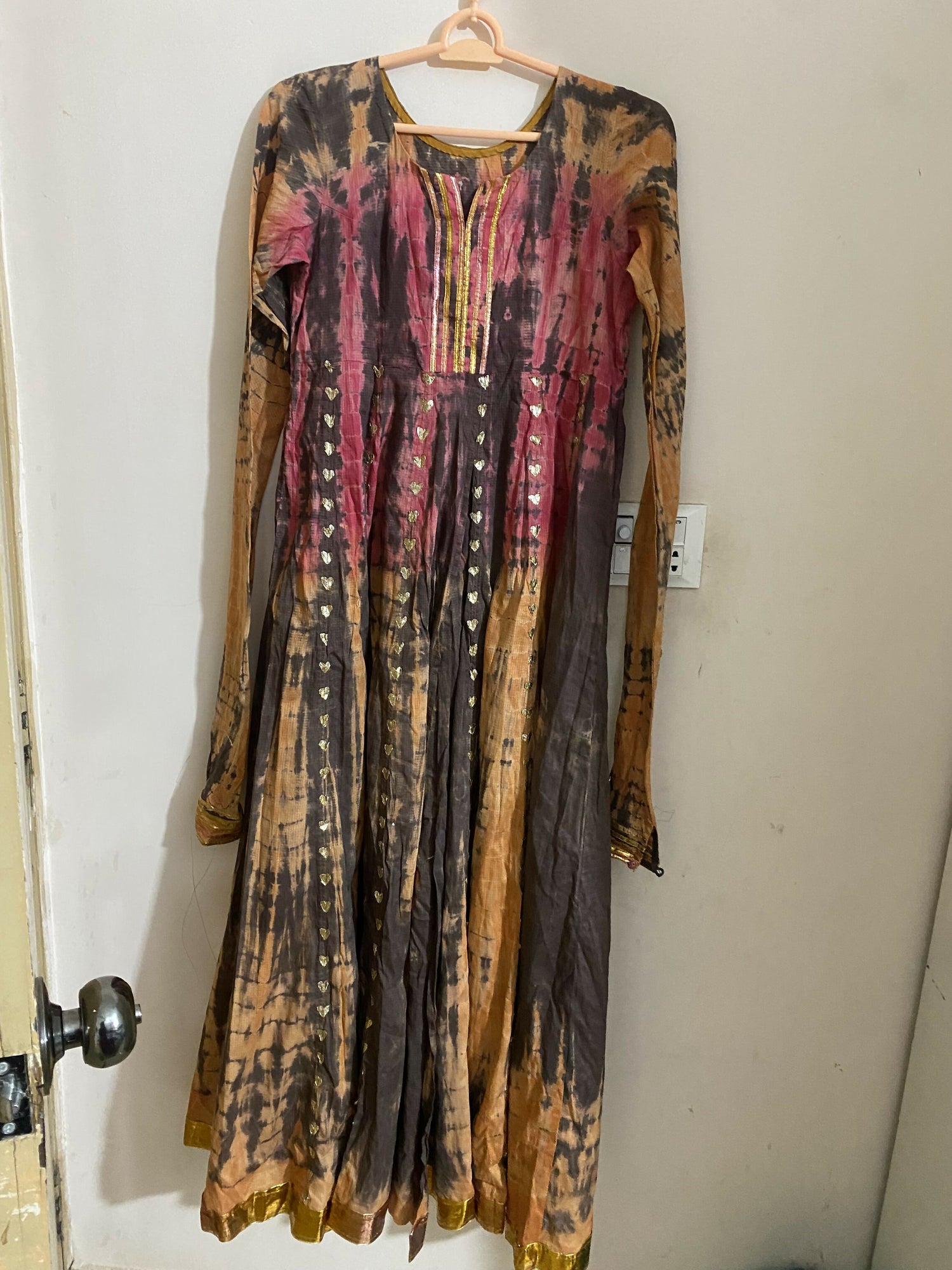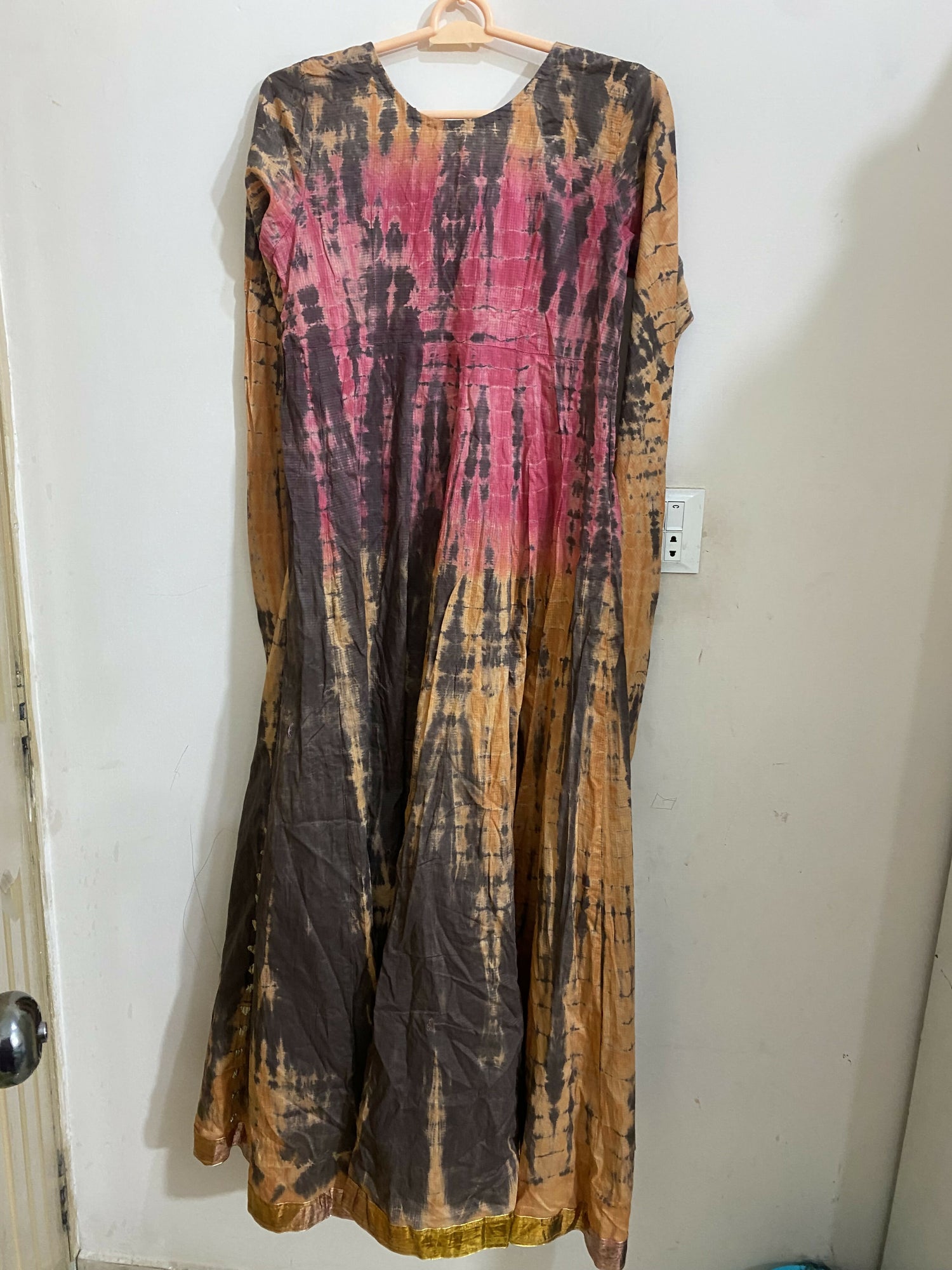 MATERIAL & MEASUREMENT Generation formals long flared maxi with choridar sleeves size small back coller removed worn for few hours Measurement : Chest 18.5 Length 53