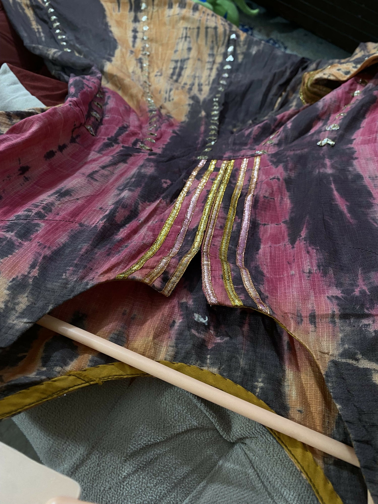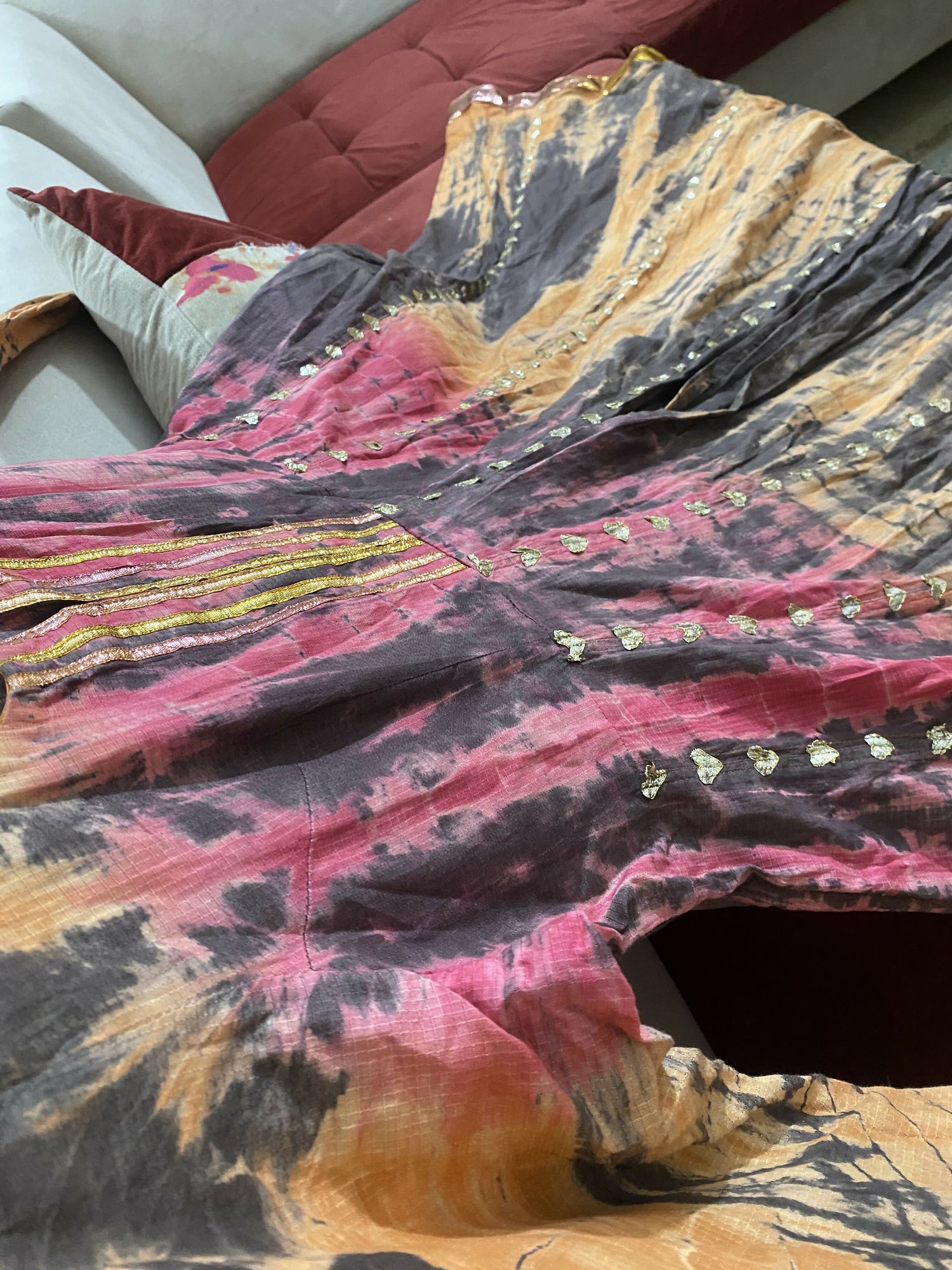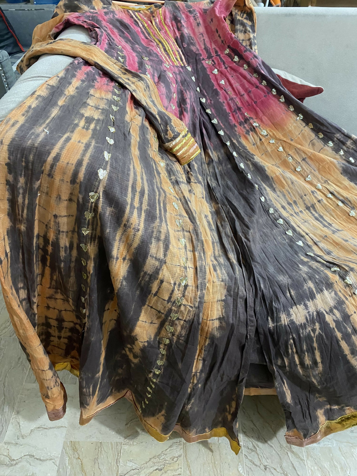MATERIAL & MEASUREMENT Generation formals long flared maxi with choridar sleeves size small back coller removed worn for few hours Measurement : Chest 18.5 Length 53