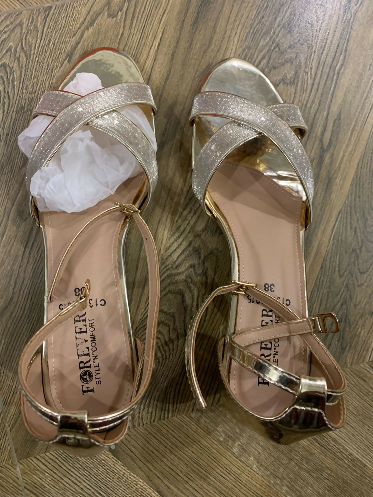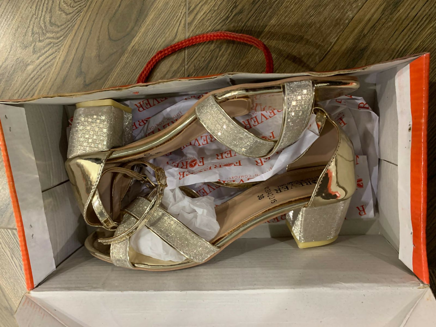 Golden Block Heel Sandals | Heels | Women Shoes | Size: 38 | Worn Once