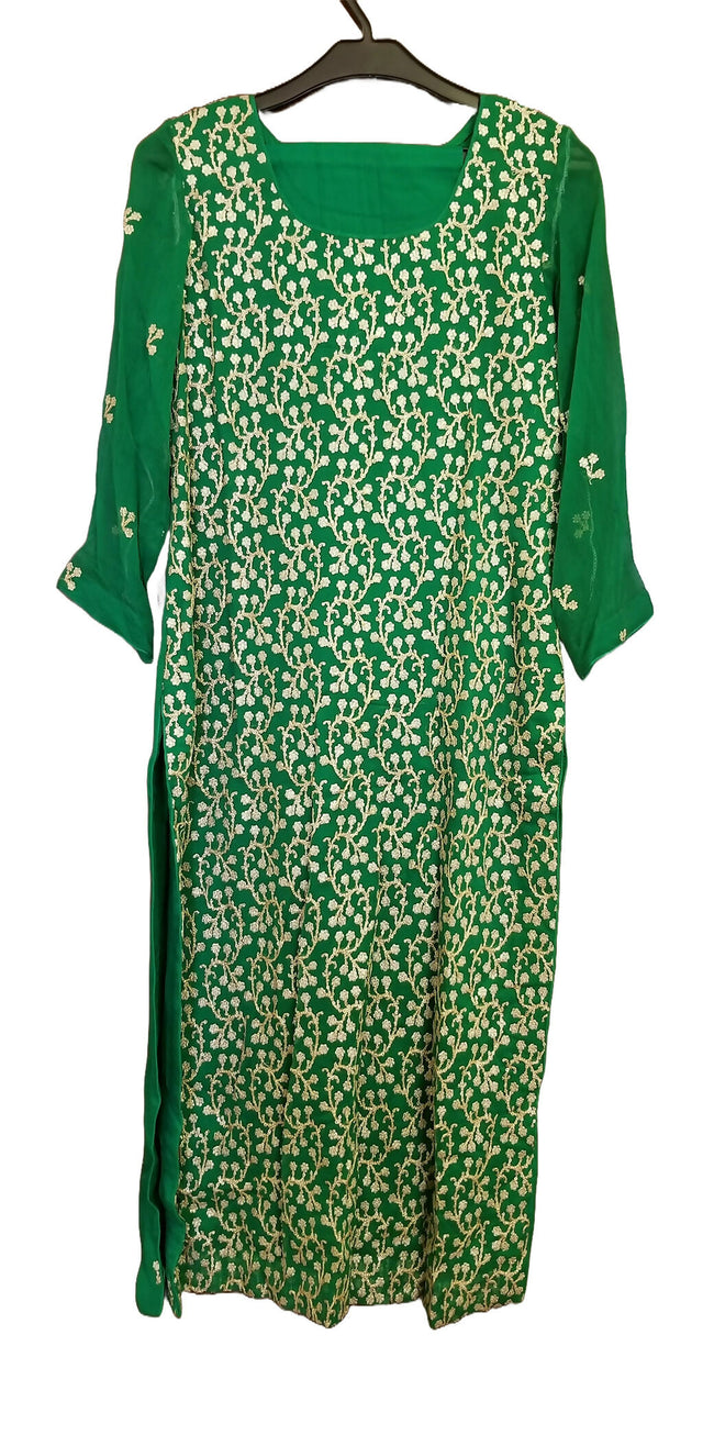 Description: Green & gold chiffon with lining Qameez Shalwar suit