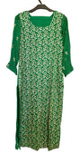 | MATERIAL & MEASUREMENT | Description: Green & gold chiffon Qameez Shalwar suit Brand : locally stitched Condition : 10/10 No of pieces : 3 Made in Pakistan Measurements: Shirt: Length: 44" Chest: 18" Sleeve: 16" Daaman :21" Shoulder : 13.5" Shalwar: Length: 36” Waist: 20” Payincha: 7” Dupatta: Length: 84” Pallu: 42” |