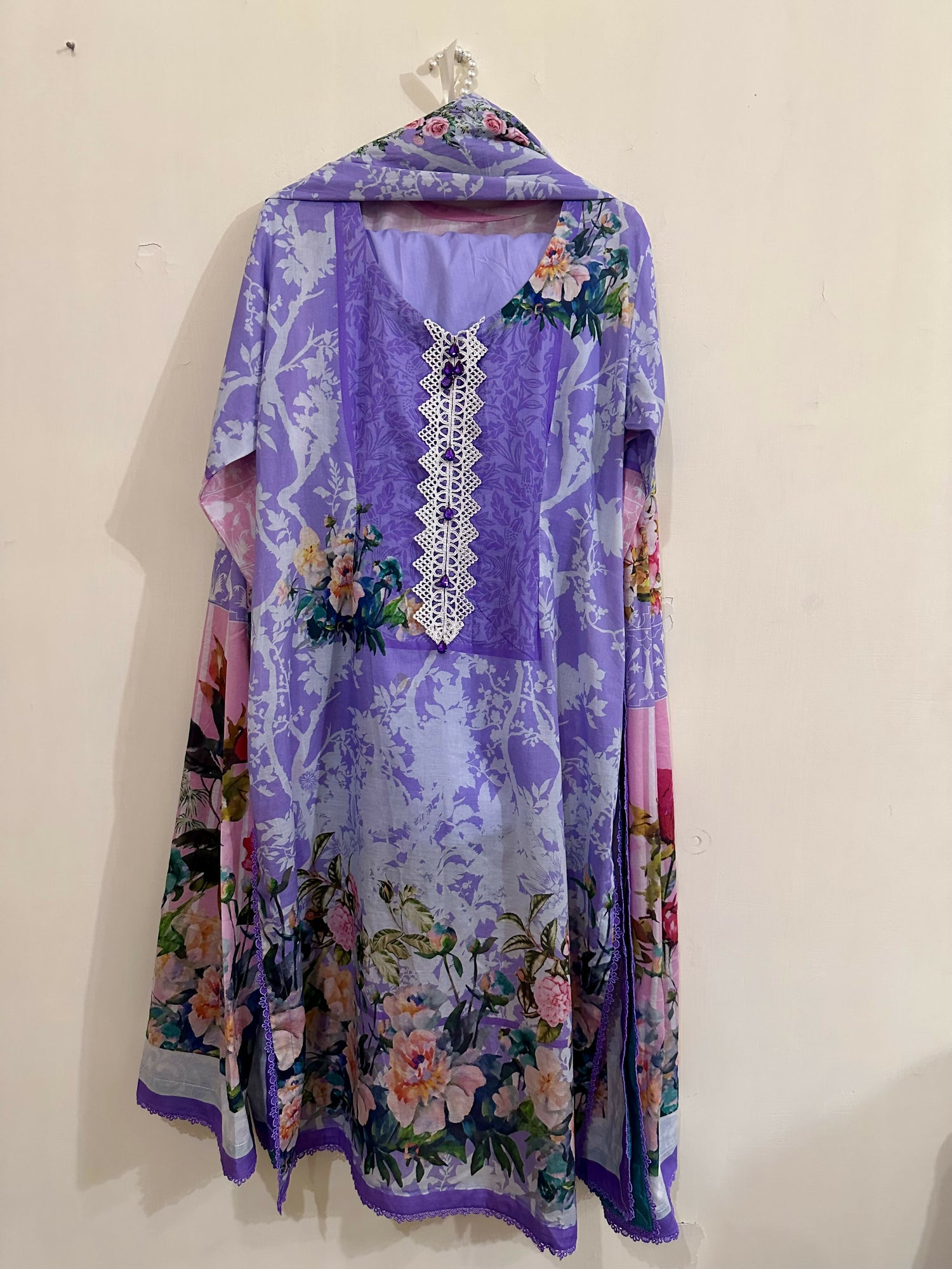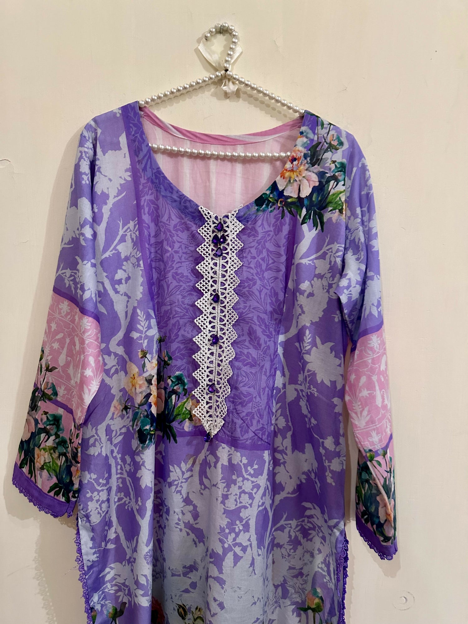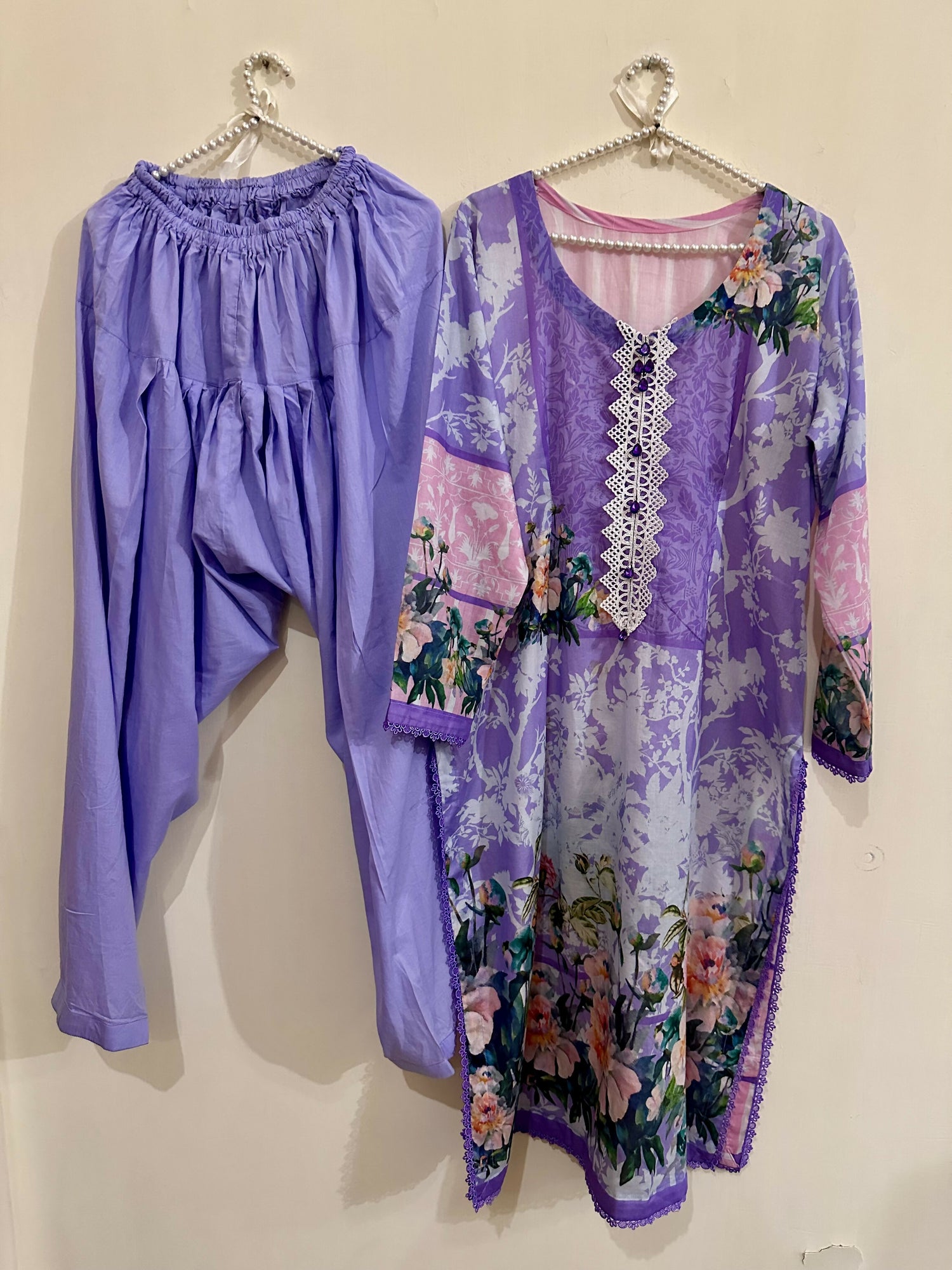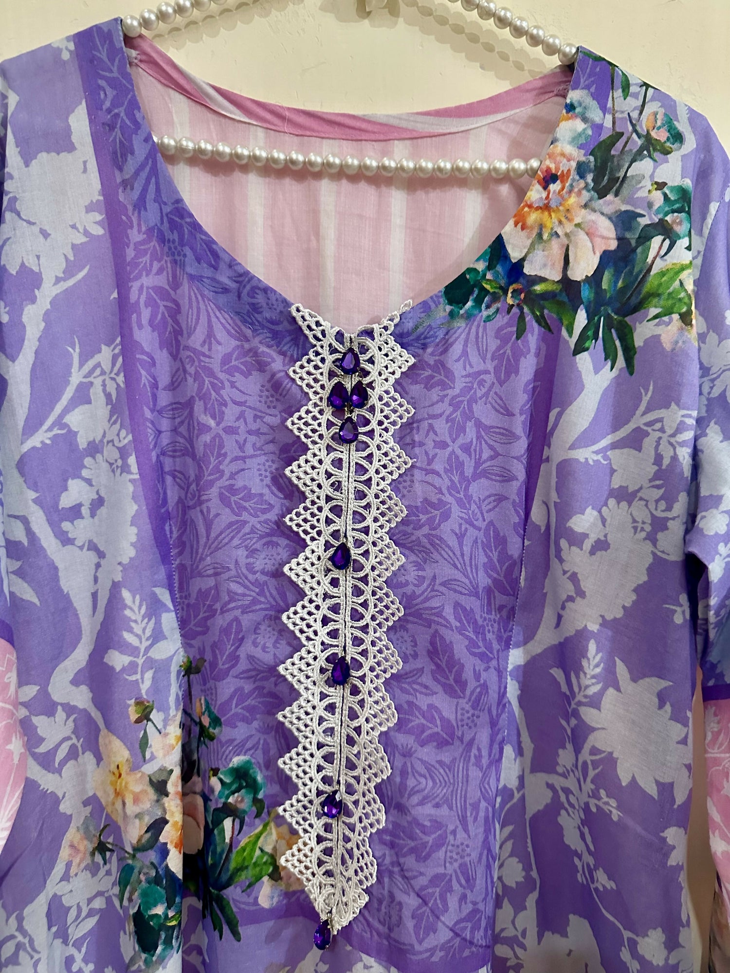 | MATERIAL & MEASUREMENT | Fabric / Material: lawn Measurement : Chest: 20 Shoulder: 15 Length: 42 Trouser length: 36 |