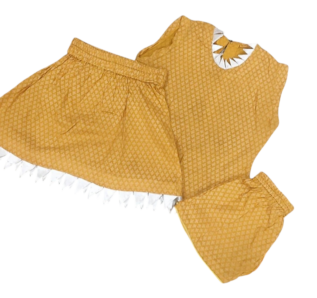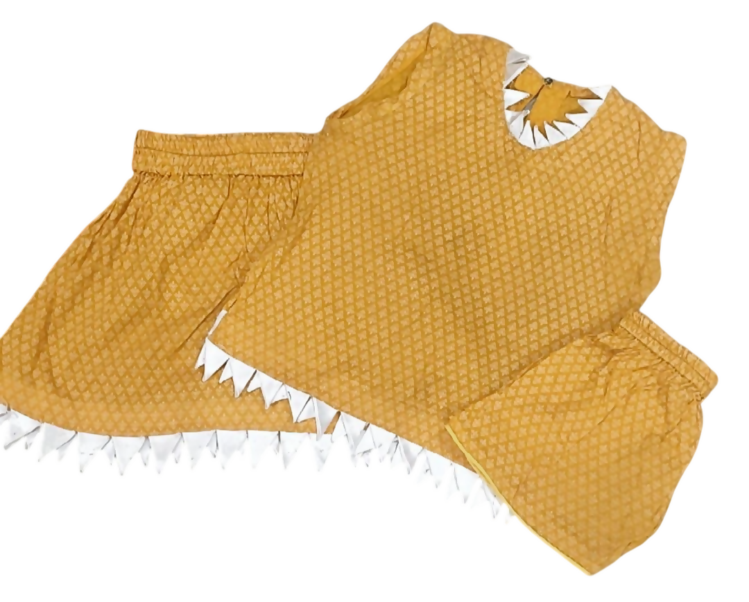 | MATERIAL & MEASUREMENT | Size: Small Shirt Length 14.5" Chest 12" Skirt Length 11" Flair 17" (one side) Short length 7" Fabric: Lawn |